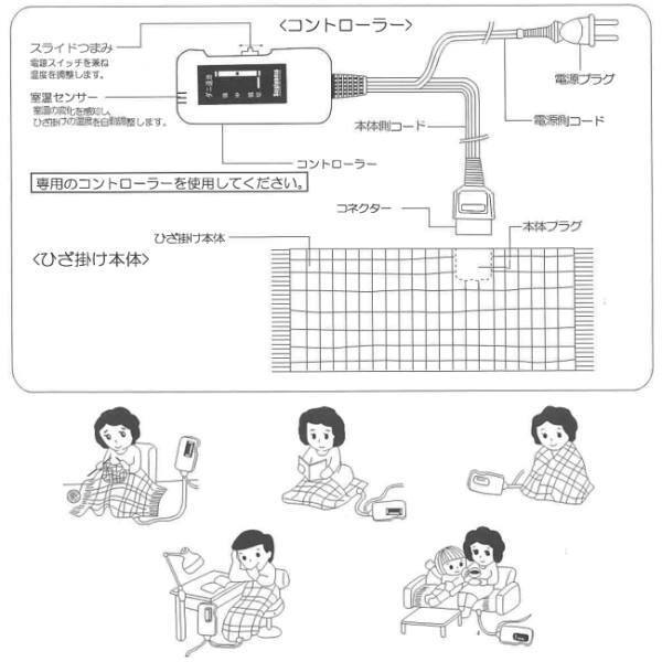 | 定格:交流100V-55W 50-60Hz共用 ひざ掛け生地:アクリル100% サイズ:(約)140×82cm(房含む) コード長:電源側 約1.9m/本体側 約0.6m 発熱体:耐熱塩化ビニル被覆ヒーター 重量:約0.85kg(コントローラー共) 表面温度:強ー約52℃ 中ー約36℃ 弱-約20℃ 機能:ダニ退治/室温センサー/丸洗いOK |