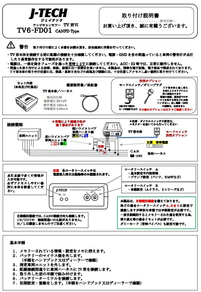 | 商品名 | 高速CAN CANFD汎用 TVキャンセラー | テレビキャンセラー TV君6 |
