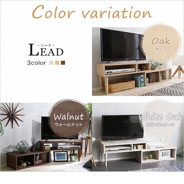 | 【ポイント】 ①薄型テレビに特化したスリム設計の伸縮式テレビ台です。 ②本体幅を調節できるから、設置スタイルは思いのままです。 ③魅せるオープン収納で自分だけの空間を演出します。 ④美しい木目調の3カラー展開です。 |