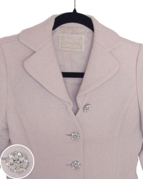 | 上品なフォクシーのジャケット。存在感のあるビジューボタンが華やか。優しいピンクで甘目なフォクシースタイルが楽しめます。 |