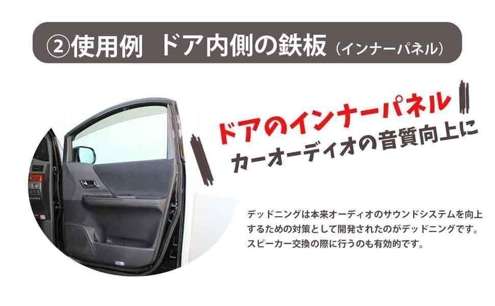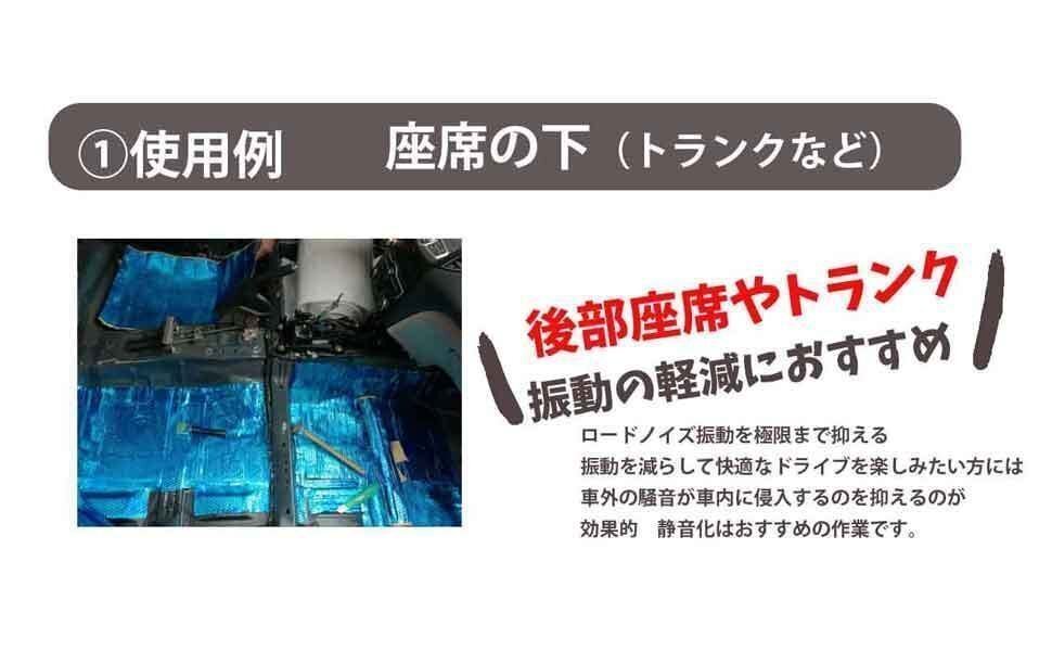 | 特 徴 | ビビリ音や共振を抑える事によって、低周波の音域を良い音にする事が出来ます。 デッドニングで、まるで高級スピーカーに変えたかのように音質改善可能! 振動による不快な異音箇所に施工する事で異音解消やロードノイズの低減もできます。 施工前、施工後でドアをノックすると音の違いがよくわかります。 |