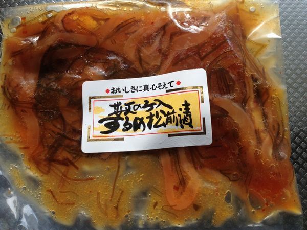 | 函館近海で獲れたするめいかと、数の子、がごめ昆布を特選醤油で漬け込んだ一品。 |