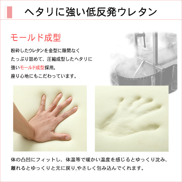 【ポイント】 しっとり沈む低反発クッションです。 底付きを感じさせない程よい硬さで、座った時の「冷たい」「硬い」お悩みもすっきり解消! ヘタリに強いモールド成型を採用した確かな品質の日本製クッションです。 洋室・和室・リビング・子供部屋など様々なお部屋に溶け込むシンプルデザイン♪ 8色のカバーリングで、マルチに使えて暮らしをサポートしてくれますよ。 クッションカバーは洗濯可能です。 |
