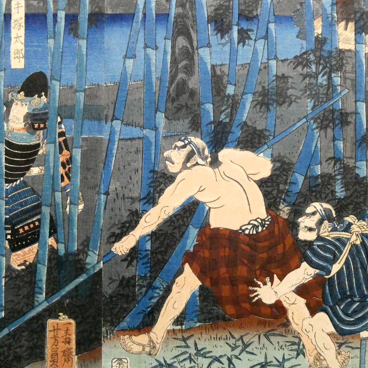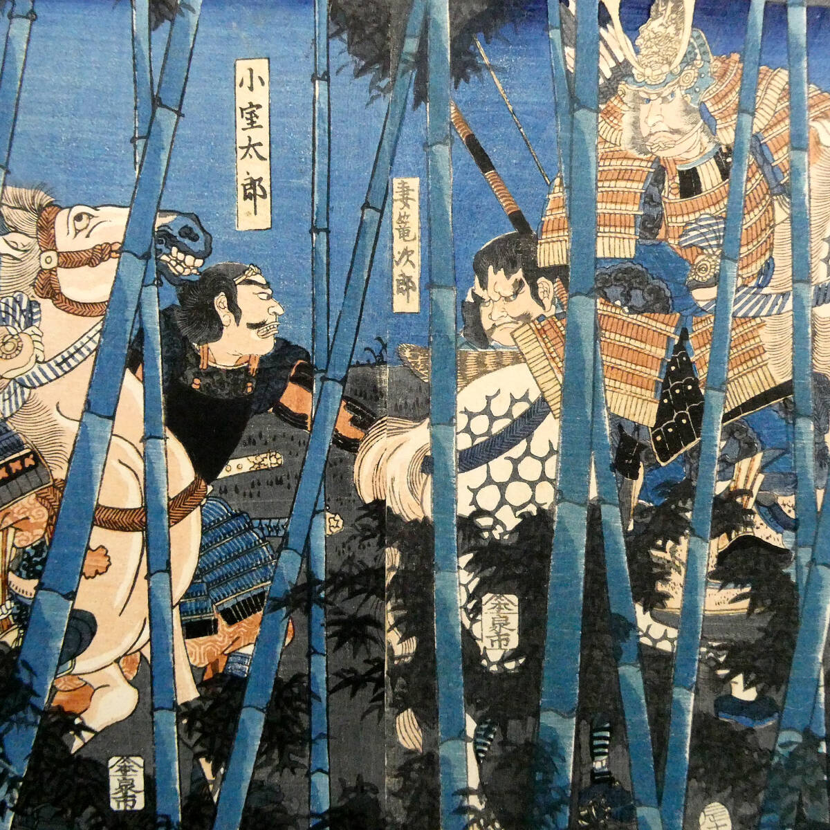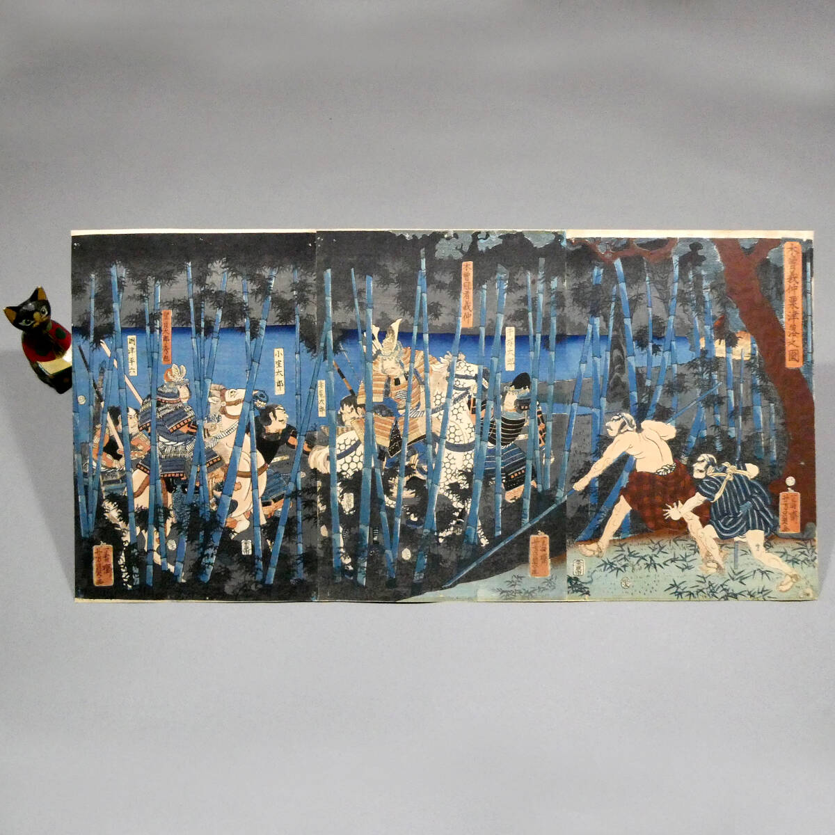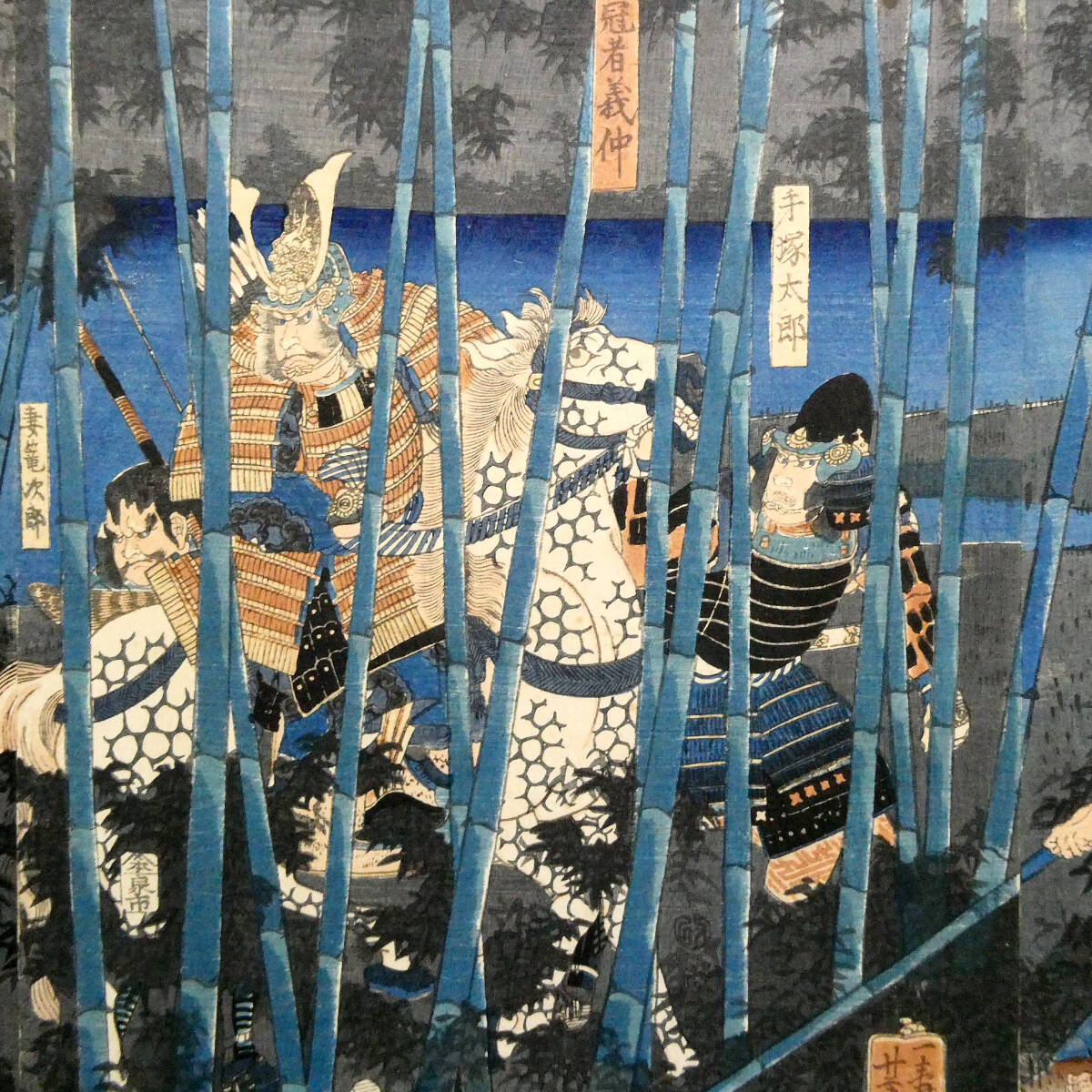 ■ 歌川芳員 江戸時代 木版浮世絵 「木曽義仲粟津落之図」3枚続揃い 義仲軍の壊滅 治承・寿永の乱 ■