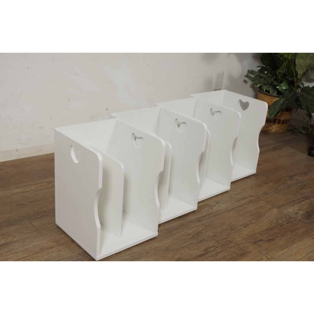 | 説明 | ■商品ランク【B】 ------------------------------------------------------------------------------------------ ※※※※※※※※ ランク説明 ※※※※※※※※ 【A】:仕入れ商品、新品、未使用品。 ∞∞∞∞∞∞∞∞∞∞∞∞∞∞∞ 以下、【新品】アウトレット商品 ∞∞∞∞∞∞∞∞∞∞∞∞∞∞∞ 【AB】:目立つ傷もほぼなく特に大きな問題はなく状態は良好。 【B】:気にならない程度のキズ、軽い打ち身・小さい塗装剥げなど有。 【C】:目立つ傷があるなどの「訳あり商品」使用して支障のない状態。 (詳細は説明欄もしくは写真参照) ※アウトレット商品につき外装段ボールの損傷・汚れがございますので 予めご了承のほどよろしくお願いいたします。 【D】中古品 :あくまで中古品であることをご理解いただき、完璧な新品をお求めの方はご遠慮ください。写真と説明文をよくご確認の上、ご検討をお願いいたします。 ---------------------------------------------------------------------------- ハートのデザインが可愛いナチュラルなブックスタンド。 仕切りが付いて本、雑誌をしっかり収納できます。 ひとつずつ、それぞれの場所で使用したり 縦横、お好きな形に重ねても使用できるので 場所を選ばず多様なシーンで活躍します。 背面が化粧仕上げになっているので カウンター上でもご使用いただけます。 サイド部分がアールになっていて 本やファイルが取り出しやすくなっています。 重量感がある丈夫な作りでA4サイズが入るので 本立てやマガジンラックをお探しの方にオススメ。 スタッキング式なので重ねて省スペースに隙間収納も可能です。 移動しやすい持ち手付き(重量:1個約3kg) |