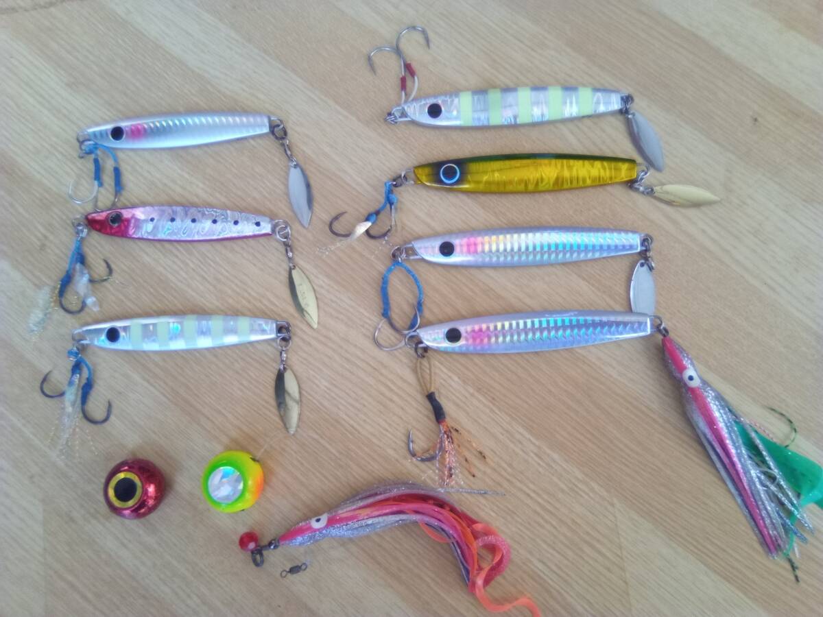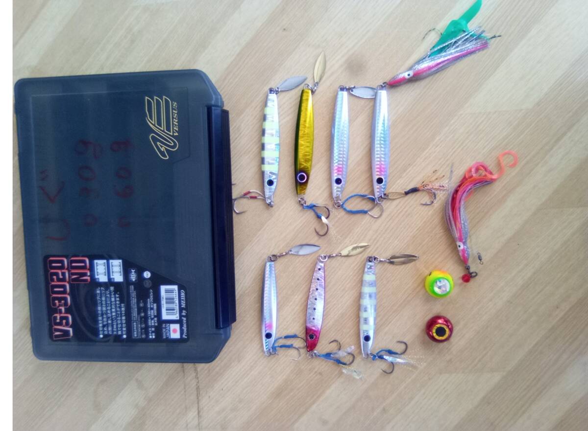 主にアコウや真鯛用に、と思って買ったジグです。根がかりしにくいようにアシストフックのみにし、自分好みのものに交換しています。リアにはフックをつけずにスピンテールやタコリグをつけたりいろいろやってます。左側3個が60g、右側4個は80gです。タイラバも2個はいっています。60gと80gかと思います。| 出价者 | 信用 | 价格 | 时间 |