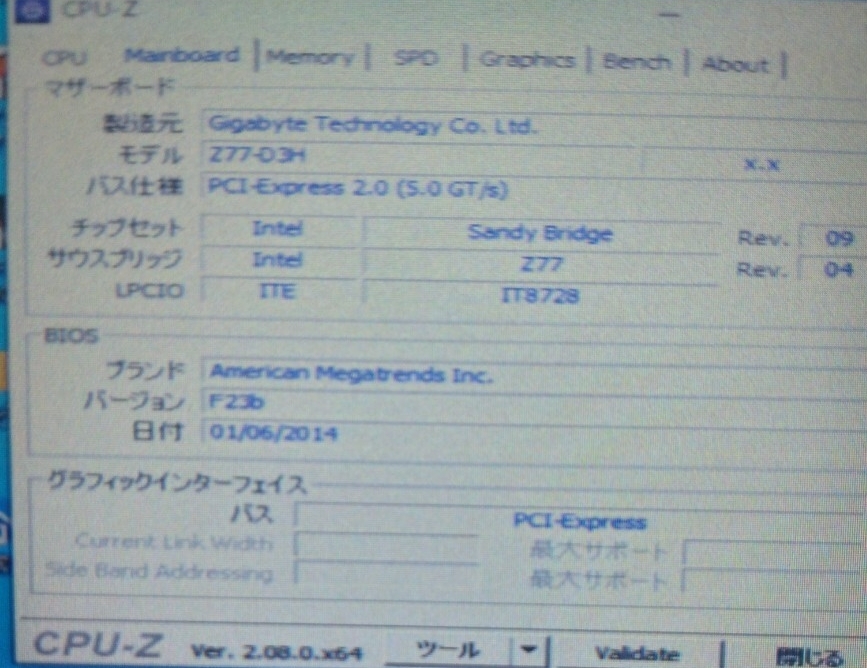 ※最新biosのF23Bへ更新済、ピン折れ曲がり無、ioパネル有でそれ以外の外箱含めた付属品等無。