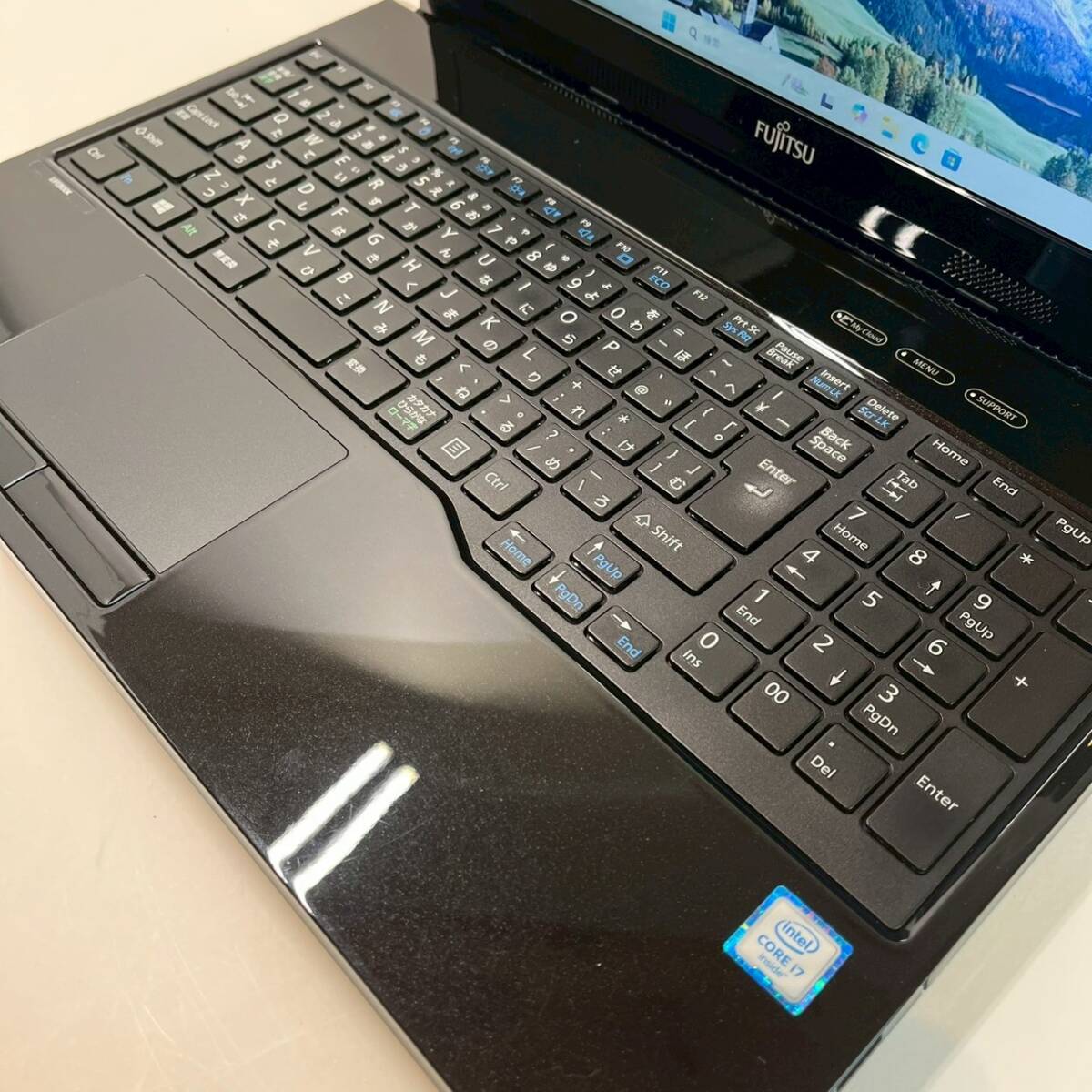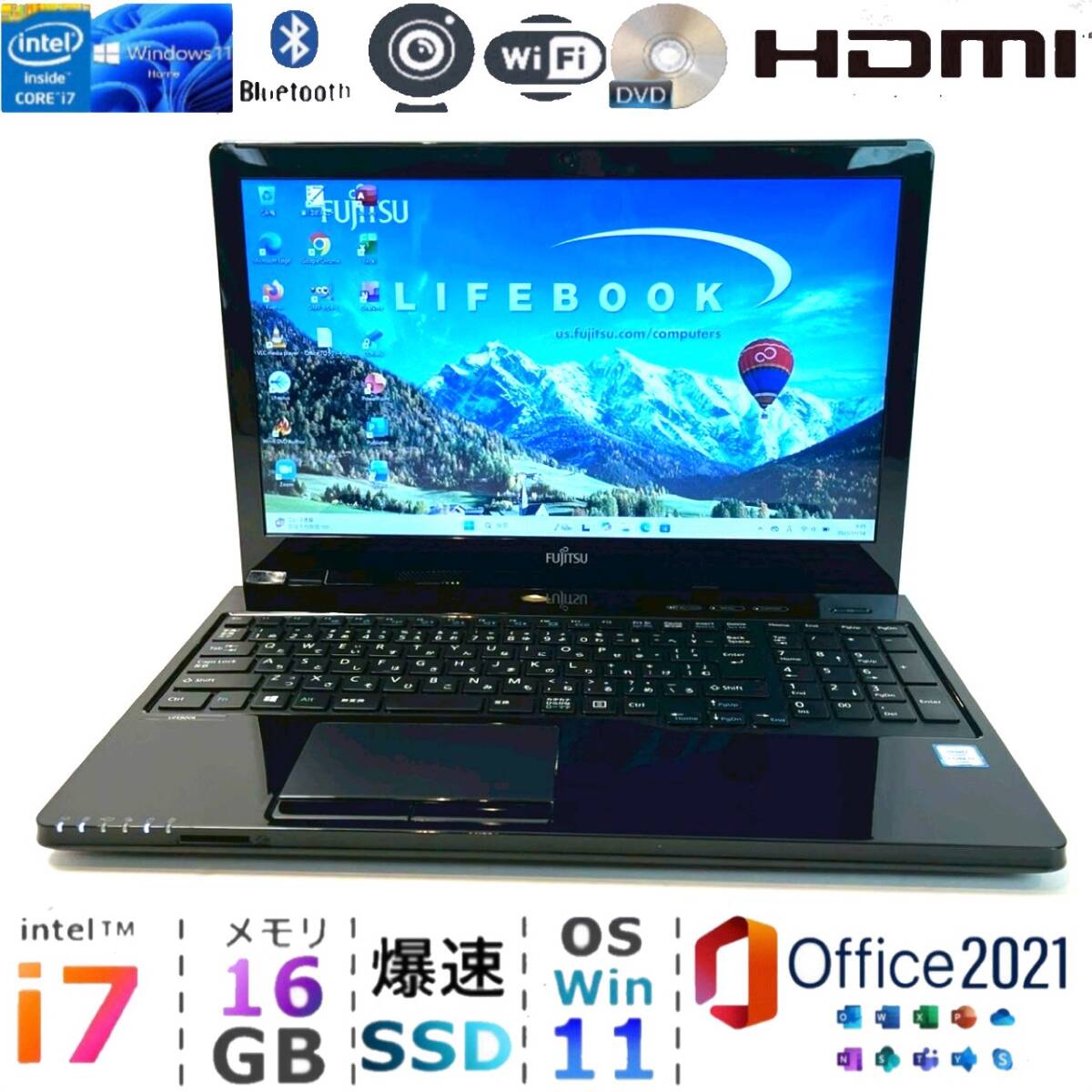 | 【配送商品の中身】 □ノートパソコン本体 (新品SSD、メモリ内蔵済み) □ACアダプタ □延長保証パンフレット 【スペック】 ■メーカー・型番:富士通 FMVWZA27B シャイニーブラック ■インストールOS:最新版Windows11Home64ビット ■CPU:Core i7-6700HQ(4コア/8スレッド) ■メモリ:DDR416GB(8GBx2) ■容量:爆速新品SSD512GB ■光学ドライブ:DVD-RW ■Office ・Microsoft Office 2021 Professional Plus(!から購入した正規品でプロダクトキー付属しています) ■装備 ●15.6型ワイドLEDバックライト付TFTカラーLCD(スーパーファイン液晶) 1366×768ドット 1677万色 ●無線LAN対応 IEEE802.11a IEEE802.11b IEEE802.11g IEEE802.11n IEEE802.11ac ●有線LAN対応 ●USB3.0準拠×3(左側面×3(うち1ポートは電源オフUSB充電機能付))、USB2.0準拠×1(右側面×1) ● HDMIポート搭載 モニターに出力して大画面での作業や動画視聴も可能 ●Webカメラ搭載 ●Bluetooth v4.1搭載 ●マイク・ラインイン・ヘッドホン・ラインアウト・ヘッドセット兼用端子(φ3.5mmステレオ・ミニジャック) ■動作確認