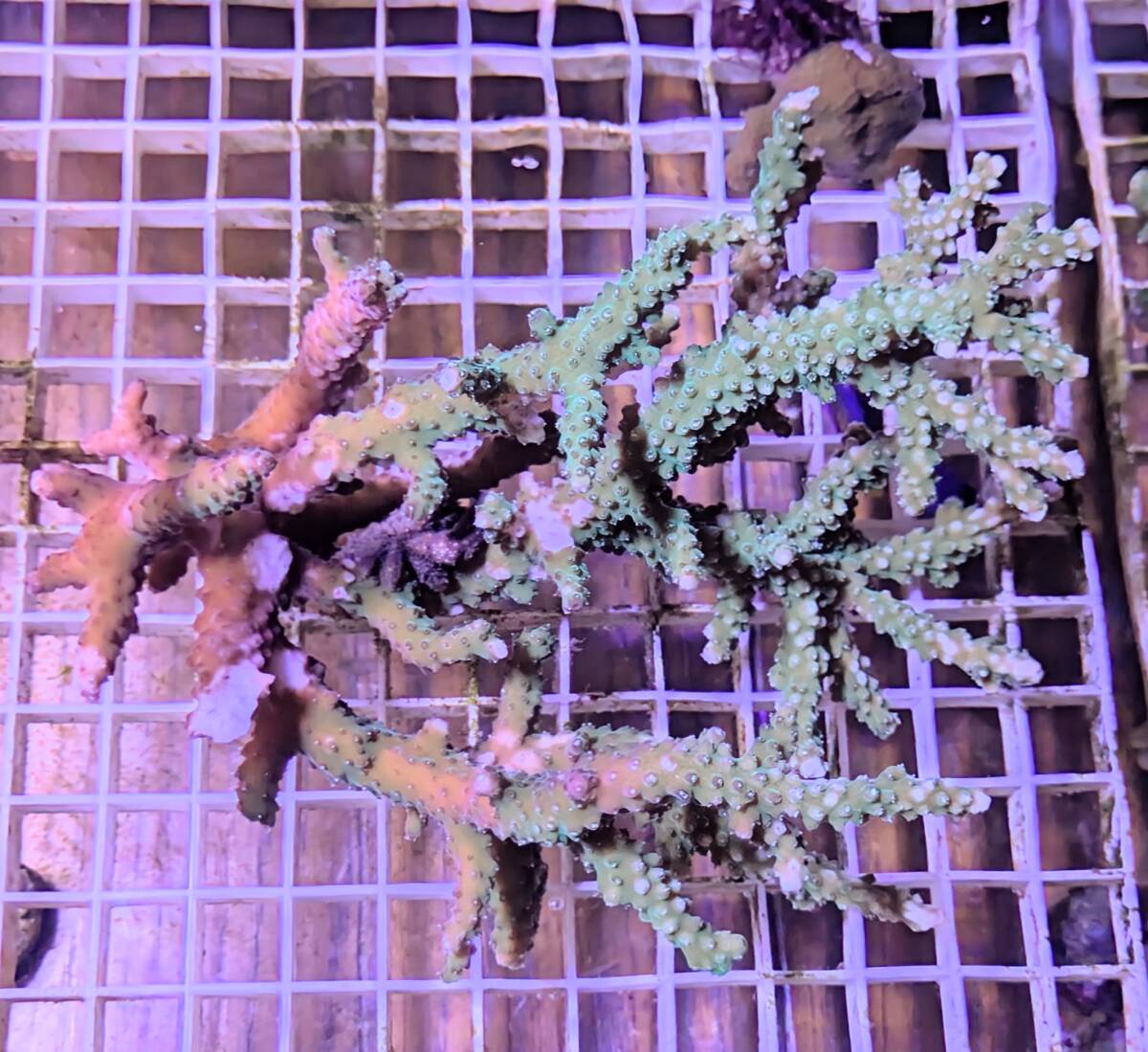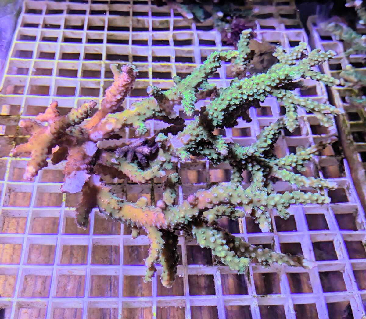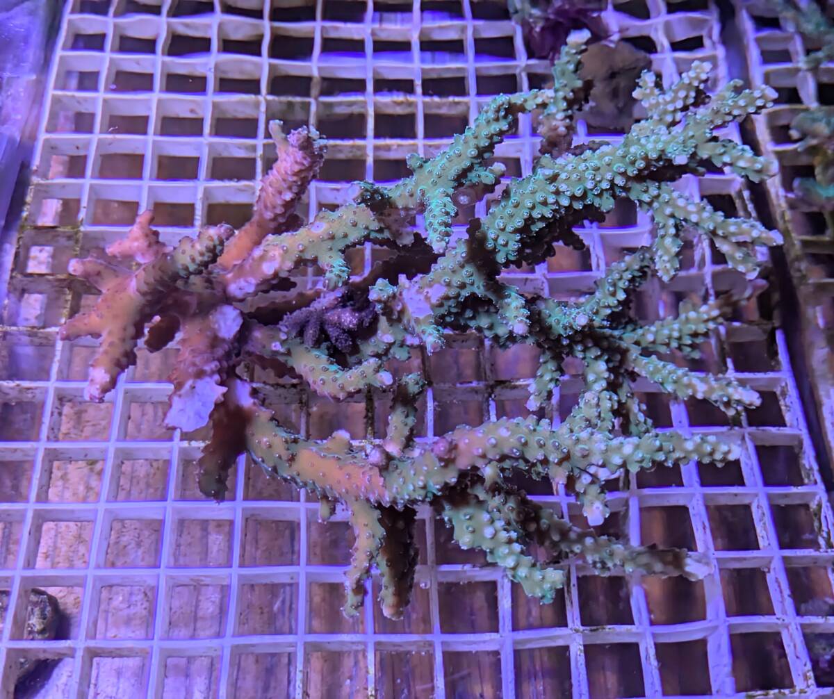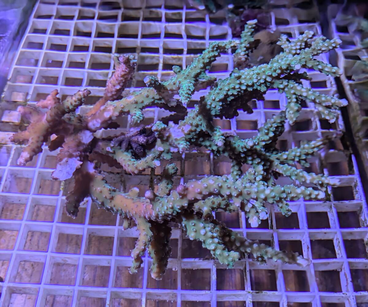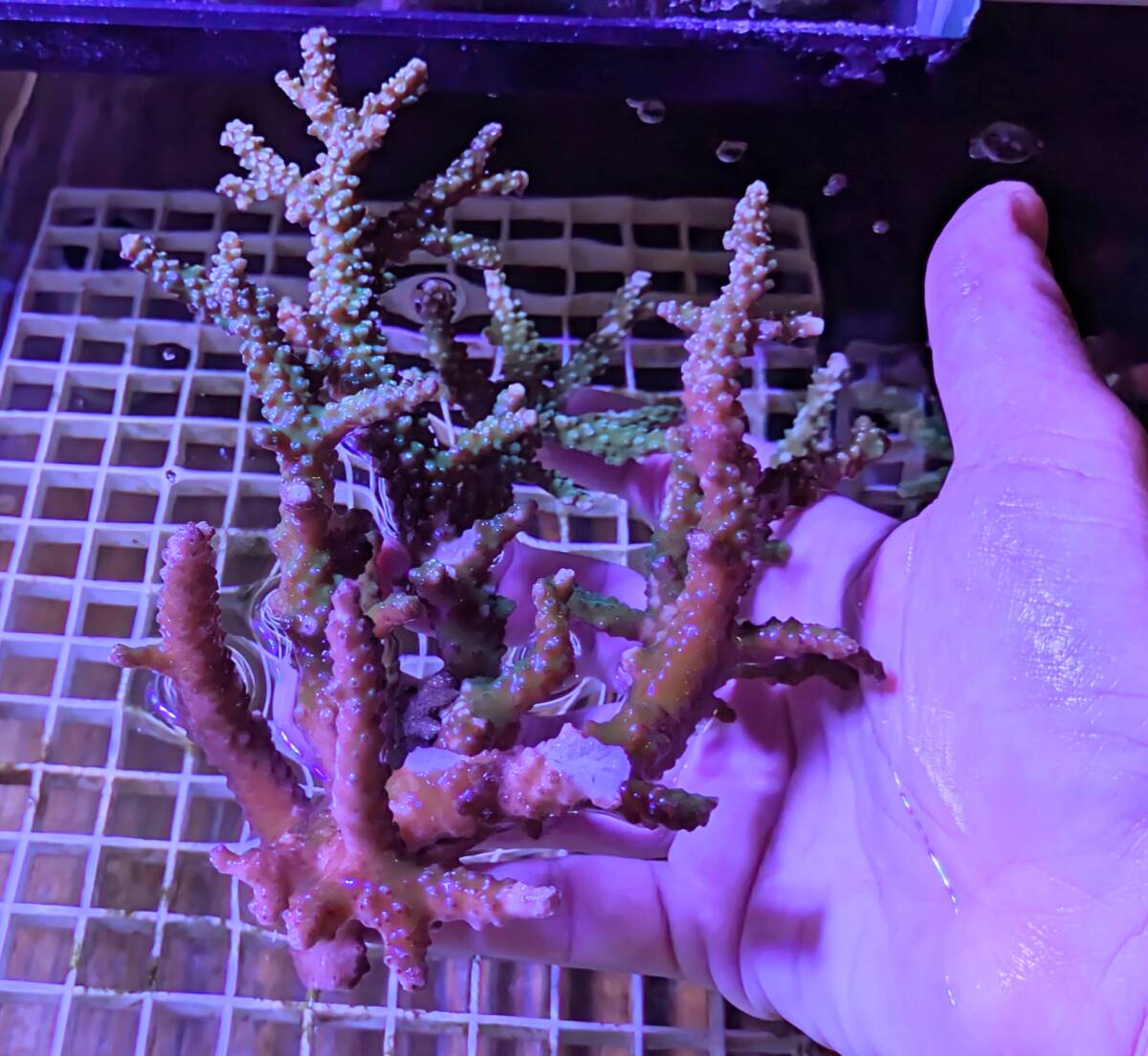 こちらのオークションで購入して当方の水槽内で増殖したサンゴです。購入時の名称は忘れてしまいましたがインドネシア産で手の平サイズをパディングした個体です。画像撮影時に15cm前後になります。(目測の為、若干の+-はご容赦下さい。LED照明下で青,白,赤系の切替をした上で撮影してあります。)画像の個体をお送り致します。2日以上かかる地域の方はリスクはご承知おき下さい。(沖縄、九州、北海道及び離島)到着御希望日(仕事の都合上、発送が出来ない日にちもございますのでご了承の上2〜3日の予備日にちをお知らせ頂けましたら幸いです。お時間、センター止もございましたら併せましてお知らせ下さい。)運賃は本州2000円,その他地域は2500円のご負担をお願い致します。(複数落札を頂いた場合は330円の差額が発生致しますのでご了承下さい。)原則、死着保障はありません。生体ですのでご理解、ご了承の上ご入札をお願い致します。写真での判断となるため、ノークレーム・ノーリターンでお願い致します。ネットでの取引になりますので上記の内容に関しまして御理解ください。飼育環境や照明機器,個体によっては、色味、柄など生体の体調や環境の変化、成長に伴う変化などがある場合もある事をご承知ください。神経質な方,細部に渡りこだわりの有る方の入札はご遠慮頂きます様お願い致します。ご不明な点や詳細に関しましては必ずご質問からお問い合わせをお願い致します。梱包中のスレや傷、輸送中の事故などの責任は負いかねますので、ご了承の上、入札お願い致します。落札後、ナビにて24時間以内の御連絡,3日以内のご入金,1週間以内の発送及び到着日当日中のお受け取り連絡をお願い致します。商品の発送は、入金確認後3日以内に行いますが生体の体調により、出品キャンセル、発送の遅れや、最悪お届けできない場合があります。生体の状態によっては、オークション中に出品をキャンセルする場合があります。悪い評価が多い方の入札はお断り致します。落札後や入札中に取り消します。以上の条件をご理解頂けます方のご入札をお願い致します。