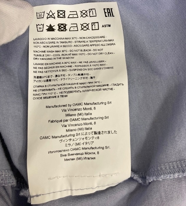 | 美品 OAMC×Ron Herman/オーエーエムシー×ロンハーマン別注/プリントTシャツ/23E28OAY13COT00727/ブルー/コットン/サイズM/メンズ/FB3912 |