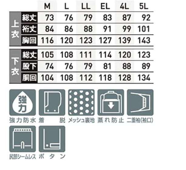 | 左胸と左肩にワッペン用ポケットあります。尻部シームレスです。下衣後中央の縫い目をなくしたことで耐水機能を工場させました。ヘルメット対応の大型フードです。二重袖です。 |