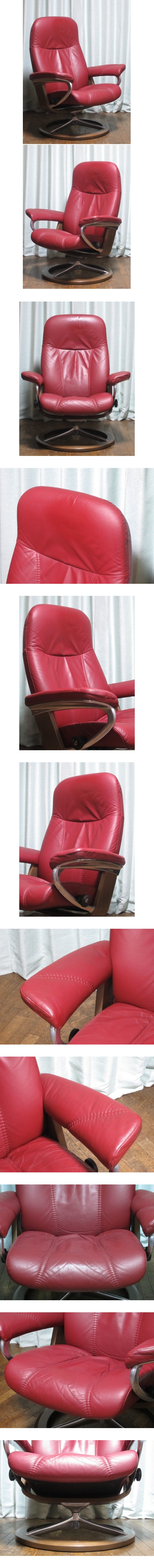 スカンジナビア最大規模の家具メーカー、ノルウェーのエコーネス社製、ストレスレスチェア「コンサル」シグニチャーベースの出品です。張り地はしなやかな手触りのワインカラー色の本革、ベースは高い強度と耐久性を持つブナ材が使用されています。背もたれに体重をかけるだけで自然にリクライニングし、体を起こすと同時に背もたれも起き上がる、グラインドシステムというエコーネス社独自の機能が採用されており、座面の両側の回転ノブで、リクライニングの角度を無段階で固定することが可能です。通常のコンサルの脚(クラシックベース)からシグニチャーベースへ変更し、よりスタイリッシュな趣を醸し出したデザインとなっており、機能性、快適性、そして品質の全てにこだわり、独自の技術で生産されたストレスレスチェア。「最高峰のリクライニングチェア」として名高いエコーネス社の最高級の座り心地をぜひ体感してみて下さい。その他、ご使用に問題のある大きなダメージ等は無く、綺麗なコンディションとなりますが、あくまでも中古品となりますので、古い物にご理解頂ける方のみご入札下さいますよう宜しくお願い致します。