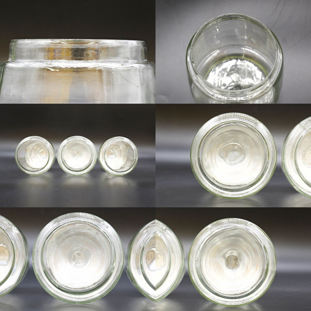 R-076440 昭和レトロ 当時物 大正~昭和初期 アルミ蓋 ガラス瓶3個セット(キャニスター、ガラスビン、硝子、菓子瓶、フタ付き) 收藏
