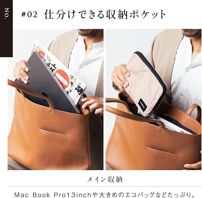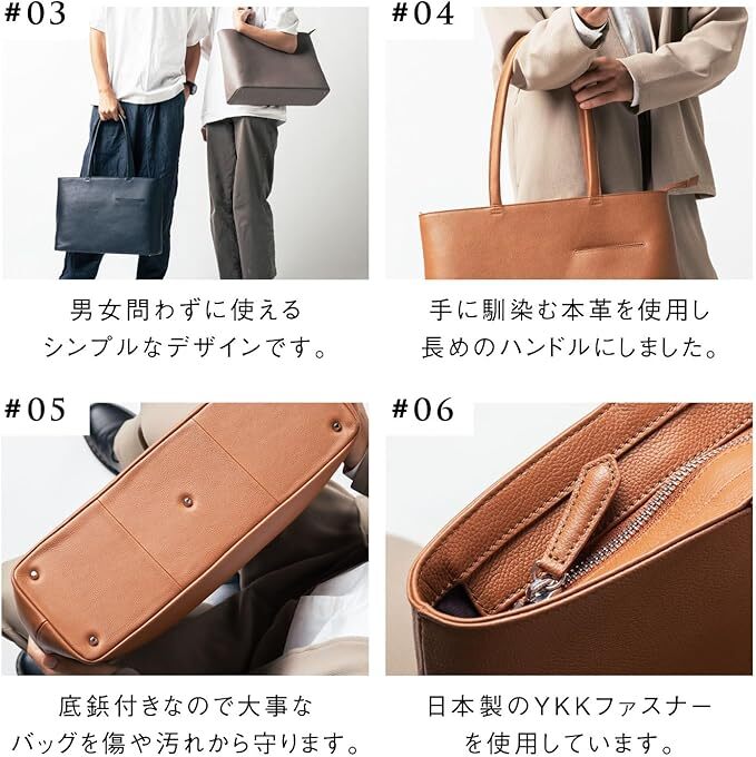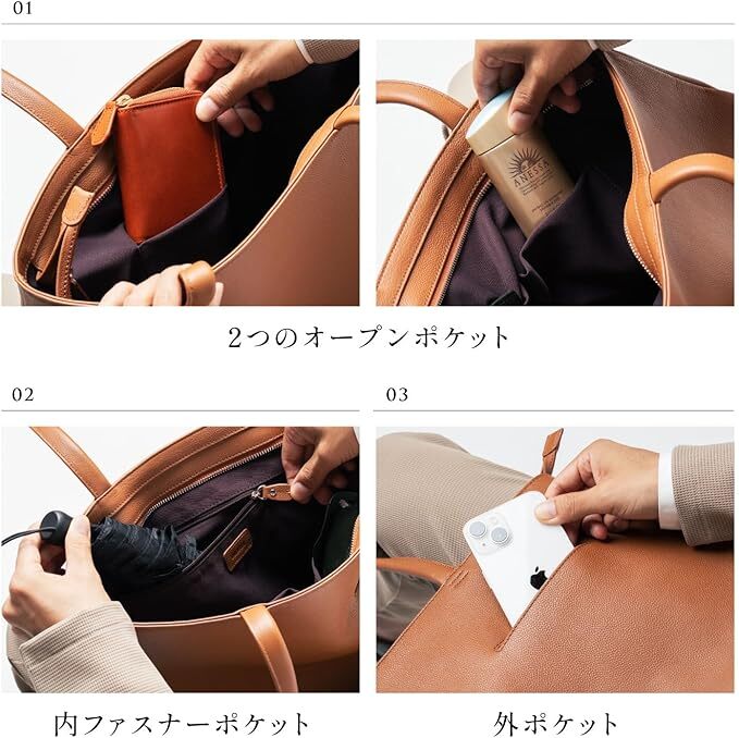 [ムラ] メンズ トートバッグ シュリンクレザー 大容量 スマホポケット付き 收藏