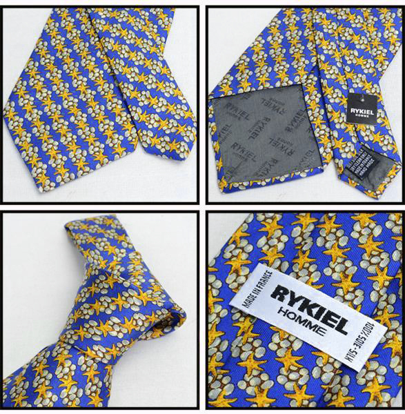 【新品未使用】在庫一掃! RYKIEL HOMME リキエル ネクタイ 柄 派手 ユニーク 絹100% シルク 青 ブルー 星 收藏