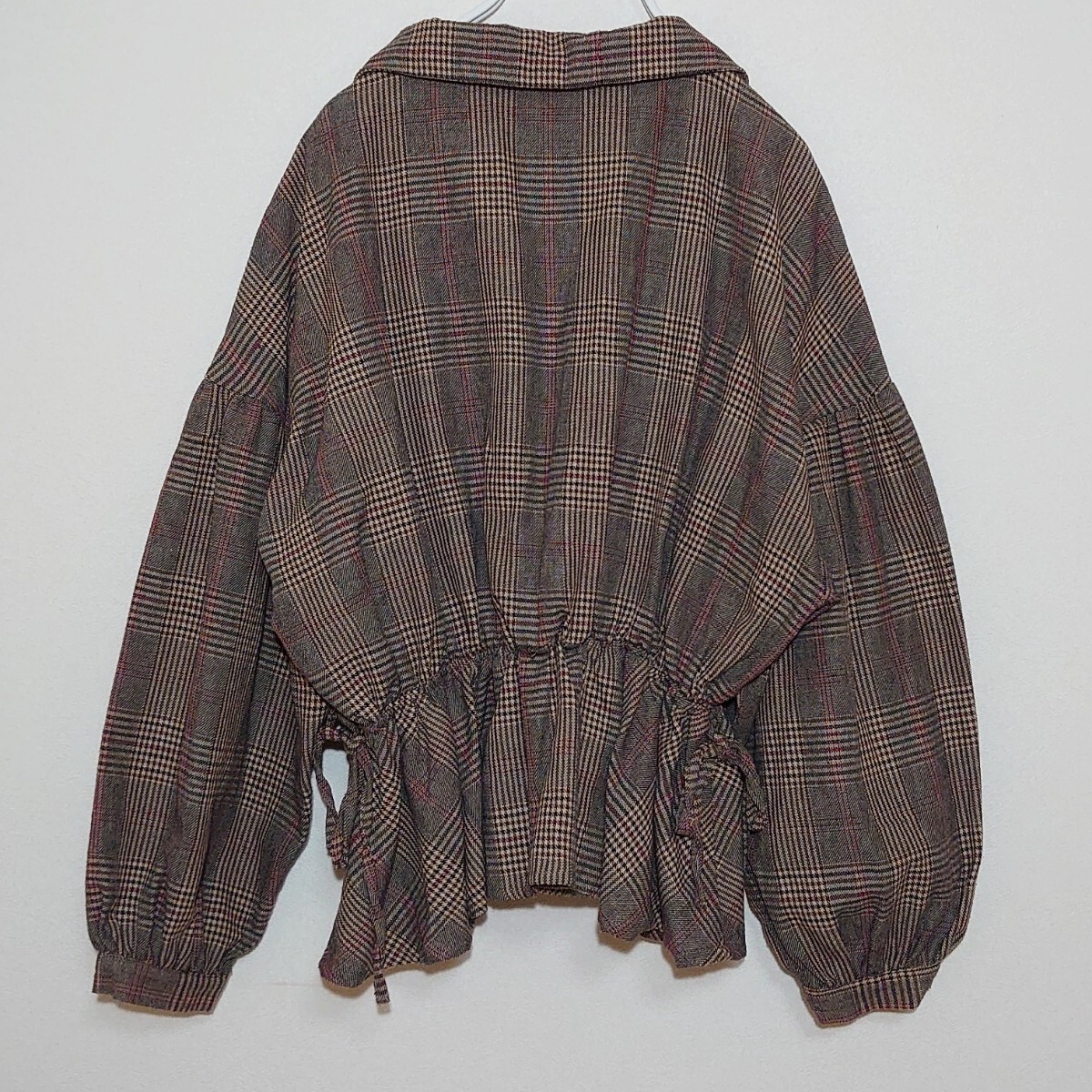 レディース オープンカラー 長袖 シャツ ブラウン チェック 裾タックスキッパーチュニック y2k Free フリーサイズ 收藏