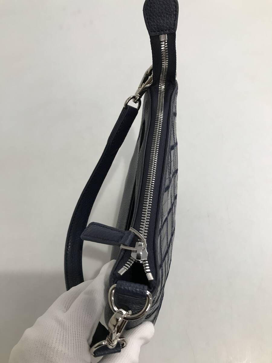 HG7341 本革 クロコダイル パッチワーク ハンドバッグ ショルダーバッグ 2way ネイビー系 ショルダーベルト付き 鞄 レディース 收藏
