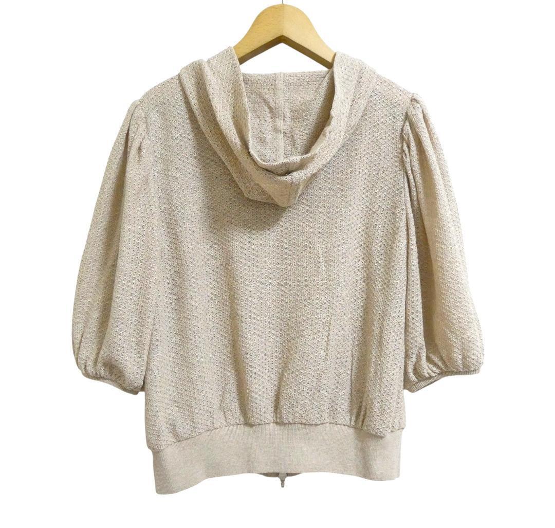 美品 Rene ルネ サイズ36 パール装飾 ローゲージ フーディ フルジップ 五分袖 七分袖 ニット カーディガン パーカー ベージュ 收藏