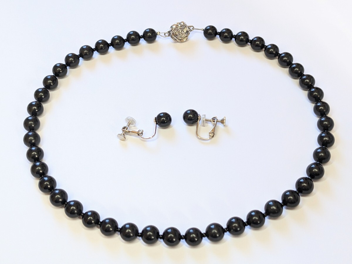 【限界市場】モーニングジュエリー★天然ジェット★8mm★長さ42cm★ネックレス&イヤリングorピアス★定形郵便送料無料 收藏