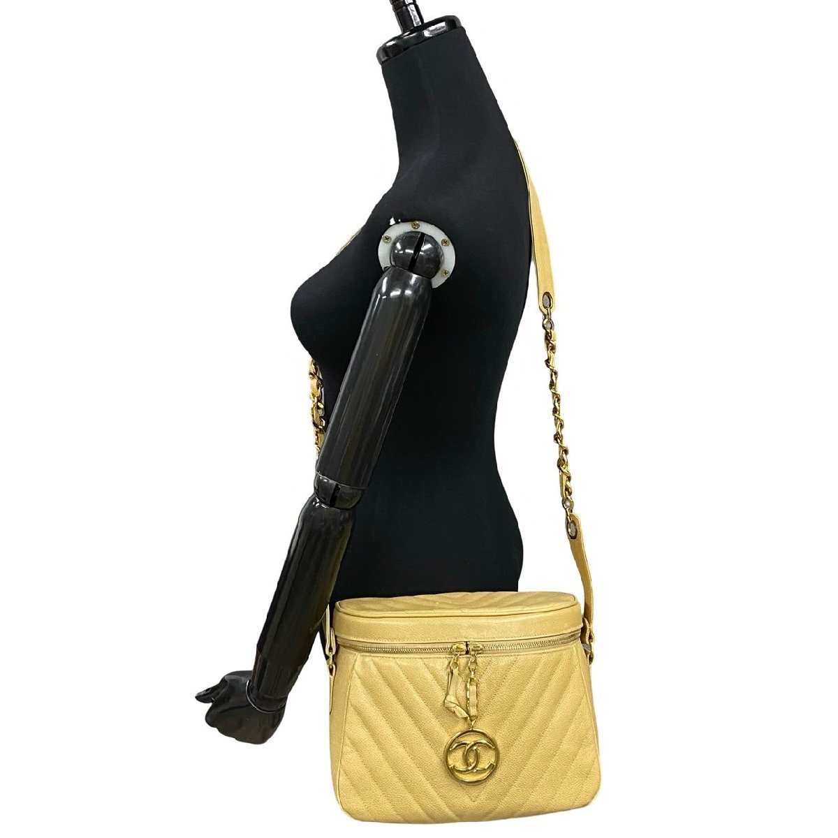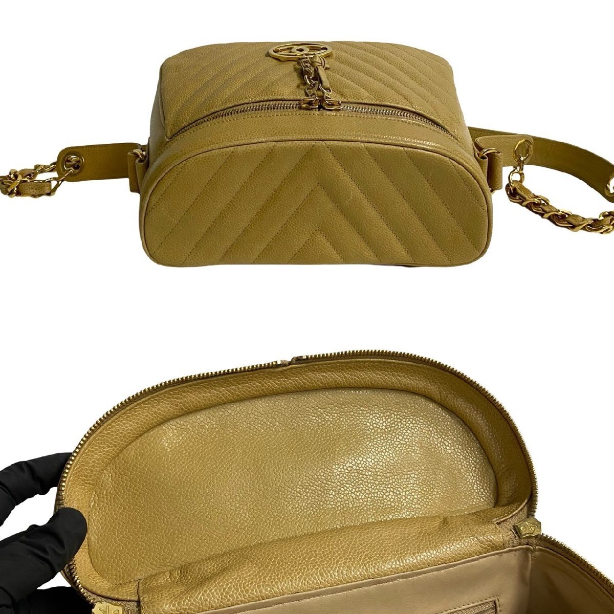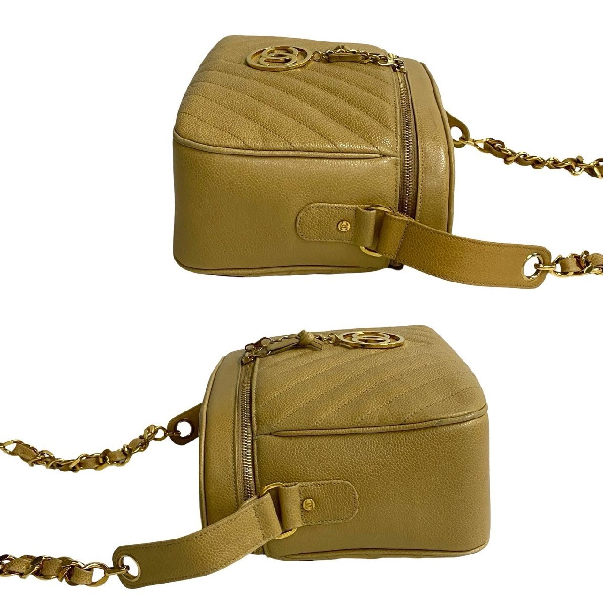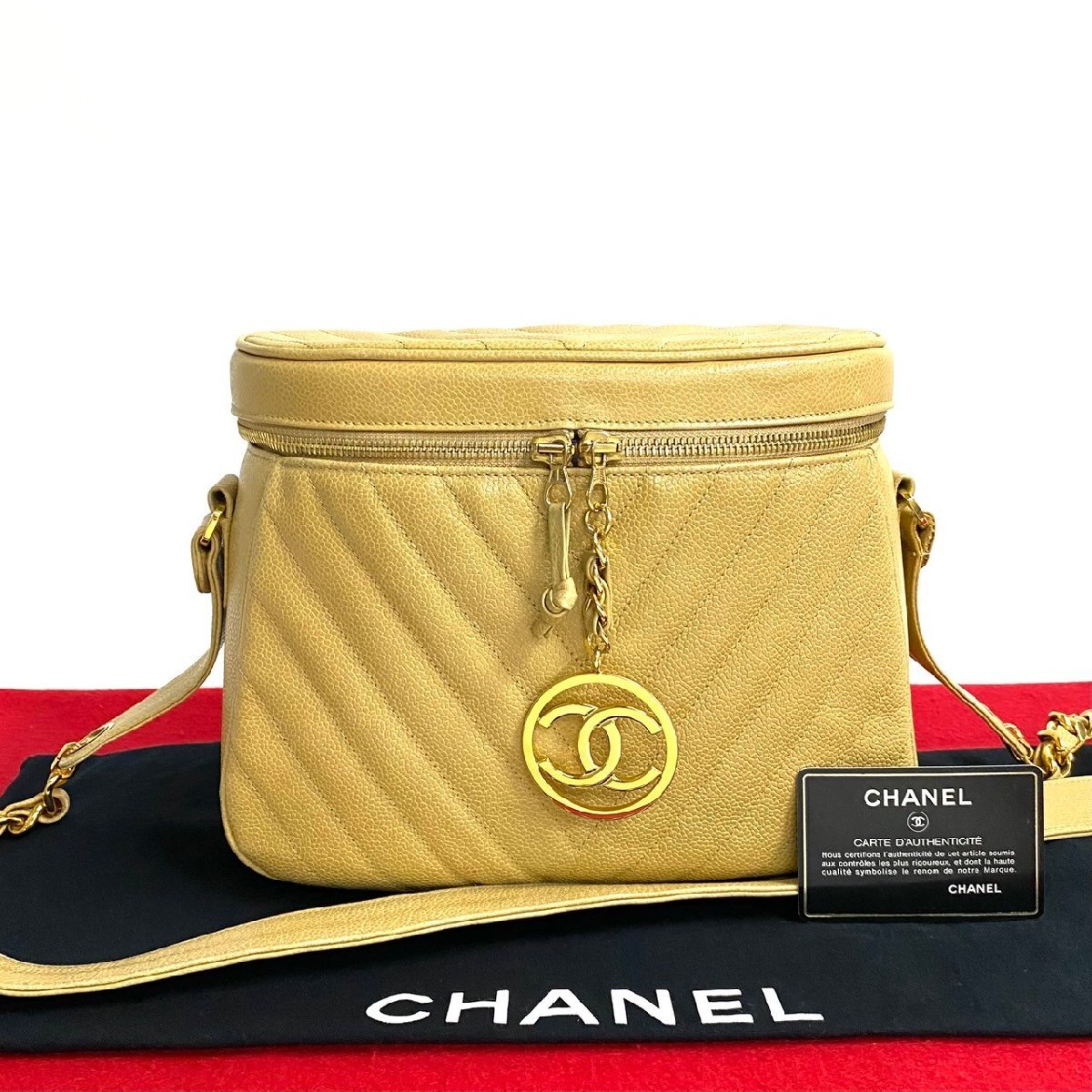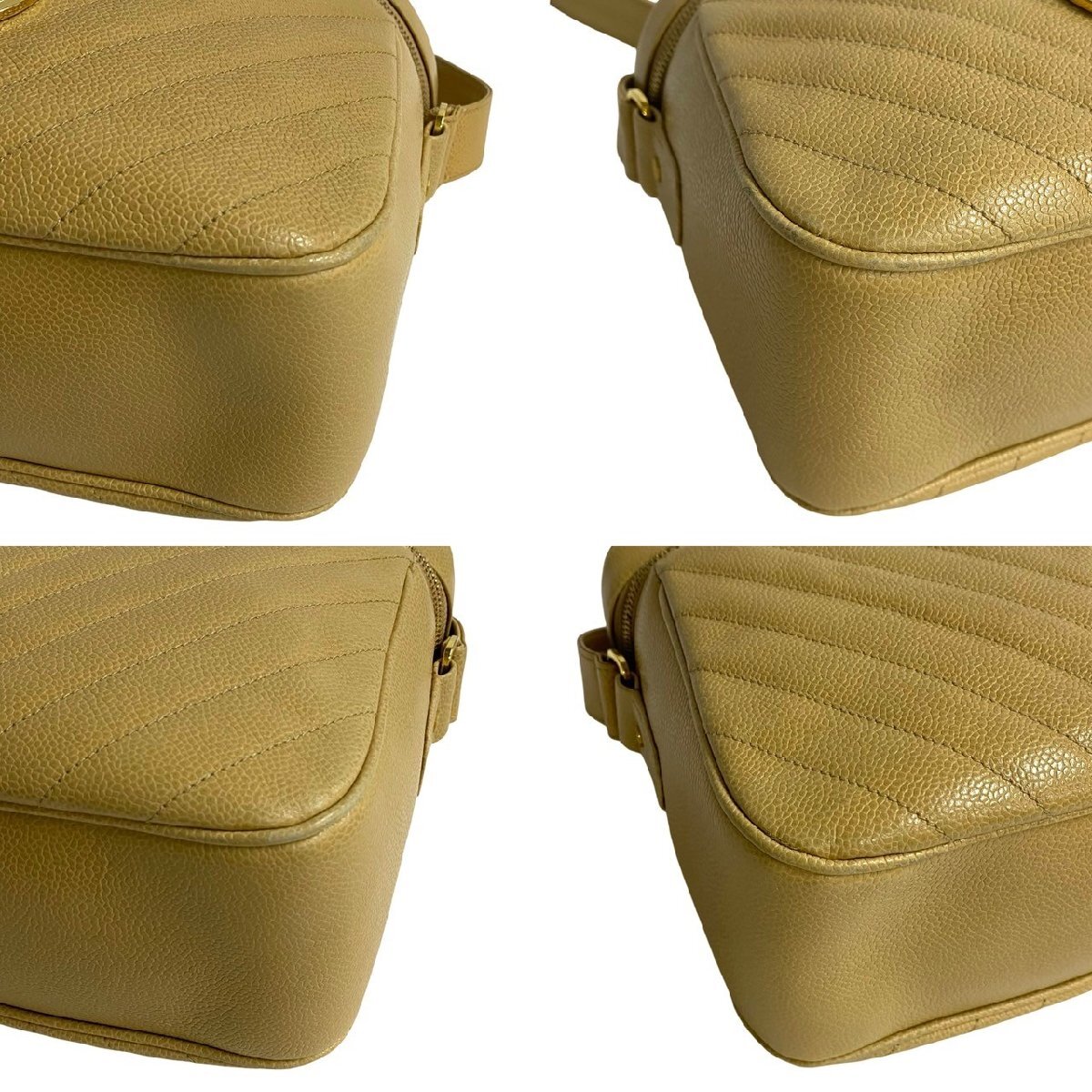極 美品 カード シール有 1番台 CHANEL シャネル Vステッチ ココマーク キャビアスキン チェーン ショルダーバッグ ベージュ 25807 收藏