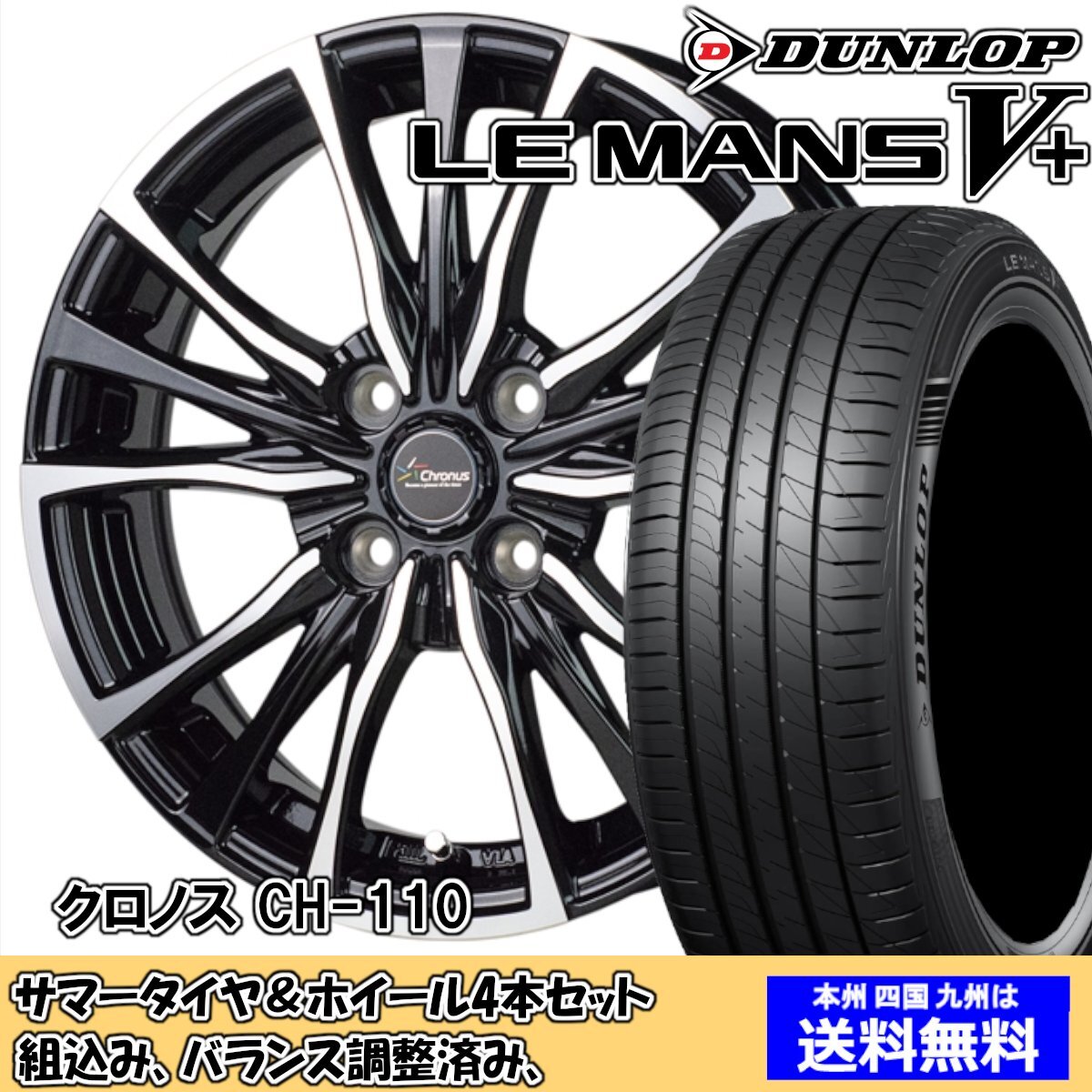 夏タイヤセット ヤリス 10系 ルマンVプラス LM5+ 195/50R16 84V クロノス CH-110 メタリックブラックポリッシュ 2024年以降製造