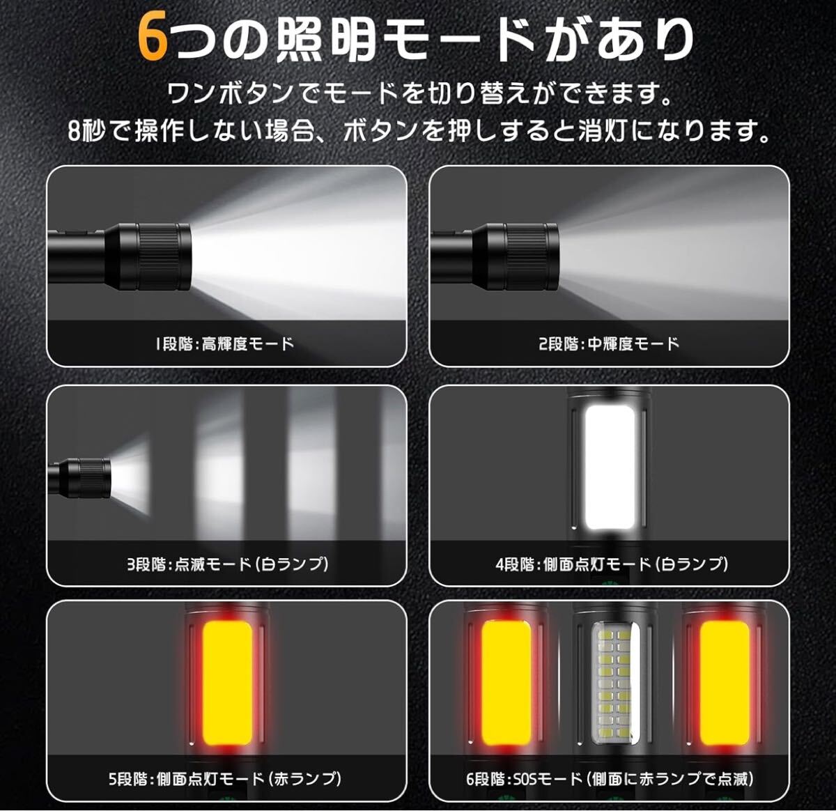 懐中電灯 夜光 ライト ハンドヘルドトーチ ledライト 白色 赤色COB 最大照射距離500m最大16時間 Type-C充電 收藏