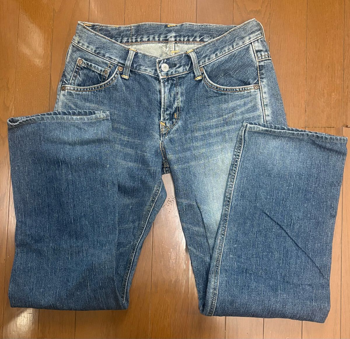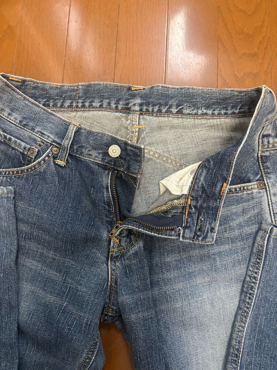 EDWINライトブルーのストレートレッグデニム、バックポケット付き、レザーパッチあり。| 出价者 | 信用 | 价格 | 时间 |