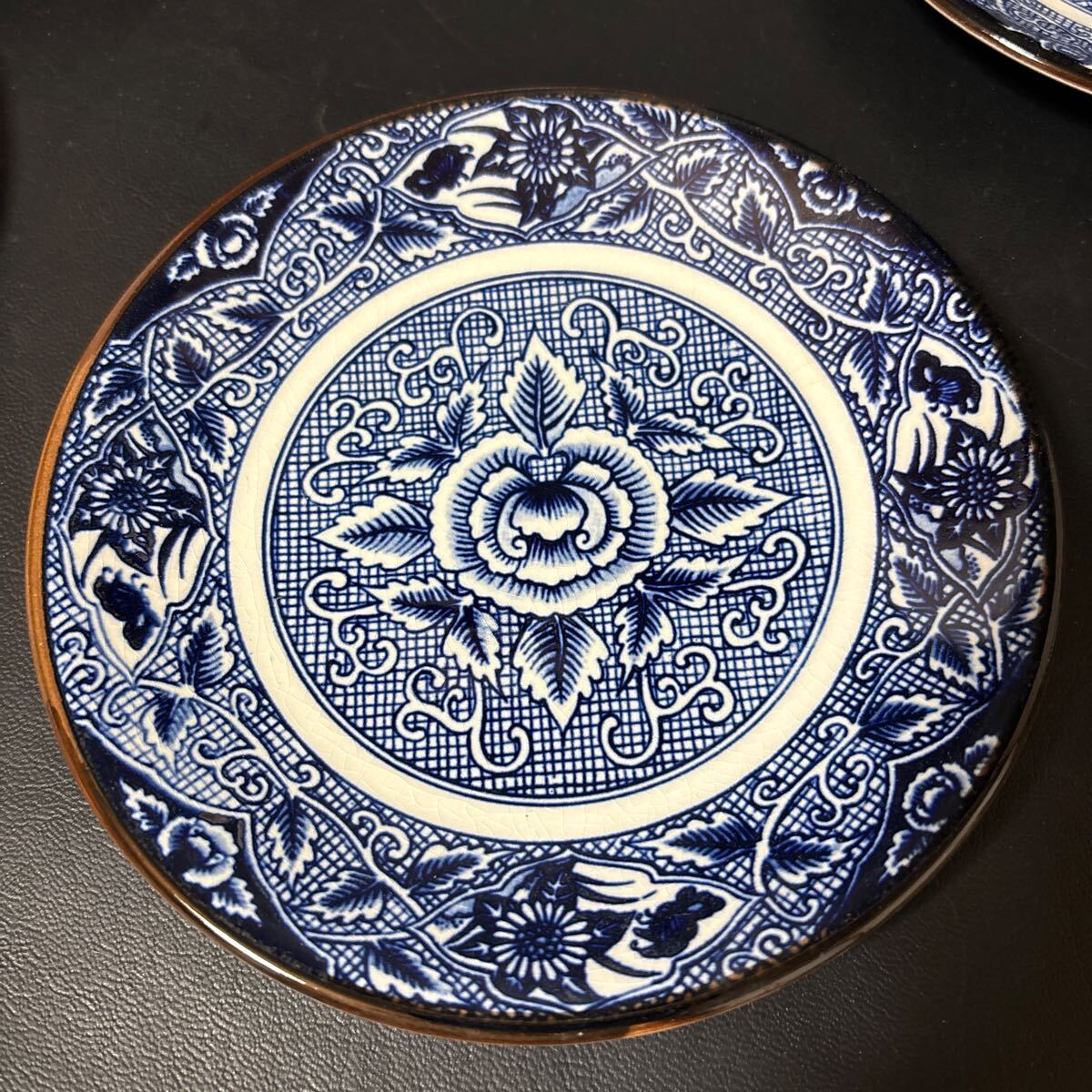 和食器 菊唐草すし皿揃 大皿1枚 小皿5枚 食器 染付 絵皿 未使用保管品 アンティーク 時代物食器 收藏