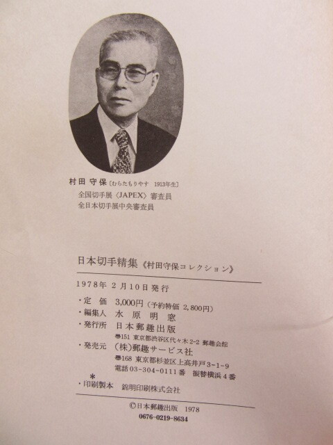 日本切手精集」村田守保コレクション、日本郵趣出版、466ページ1978年発行、発行価格6,000円、K6 收藏
