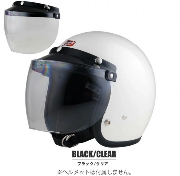 ■スナップにはアジャスター機能が付いているので、3 スナップ式のシールドが装着できるものであればほとんどのヘルメットに対応可能。