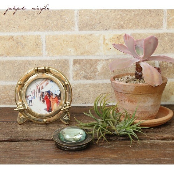 真鍮 船窓型 フォトフレーム ウィンドウ ゴールド アンティーク調 ブラス 写真立て 船 船舶 結婚式 結婚写真 写真 オブジェ インテリア 收藏