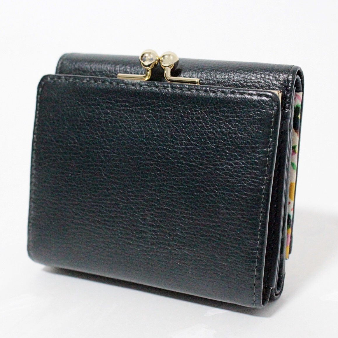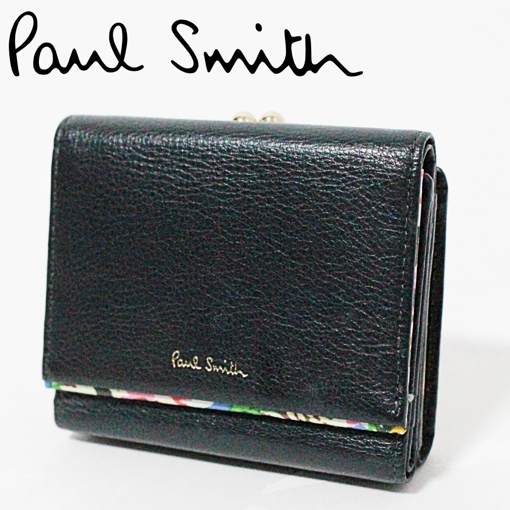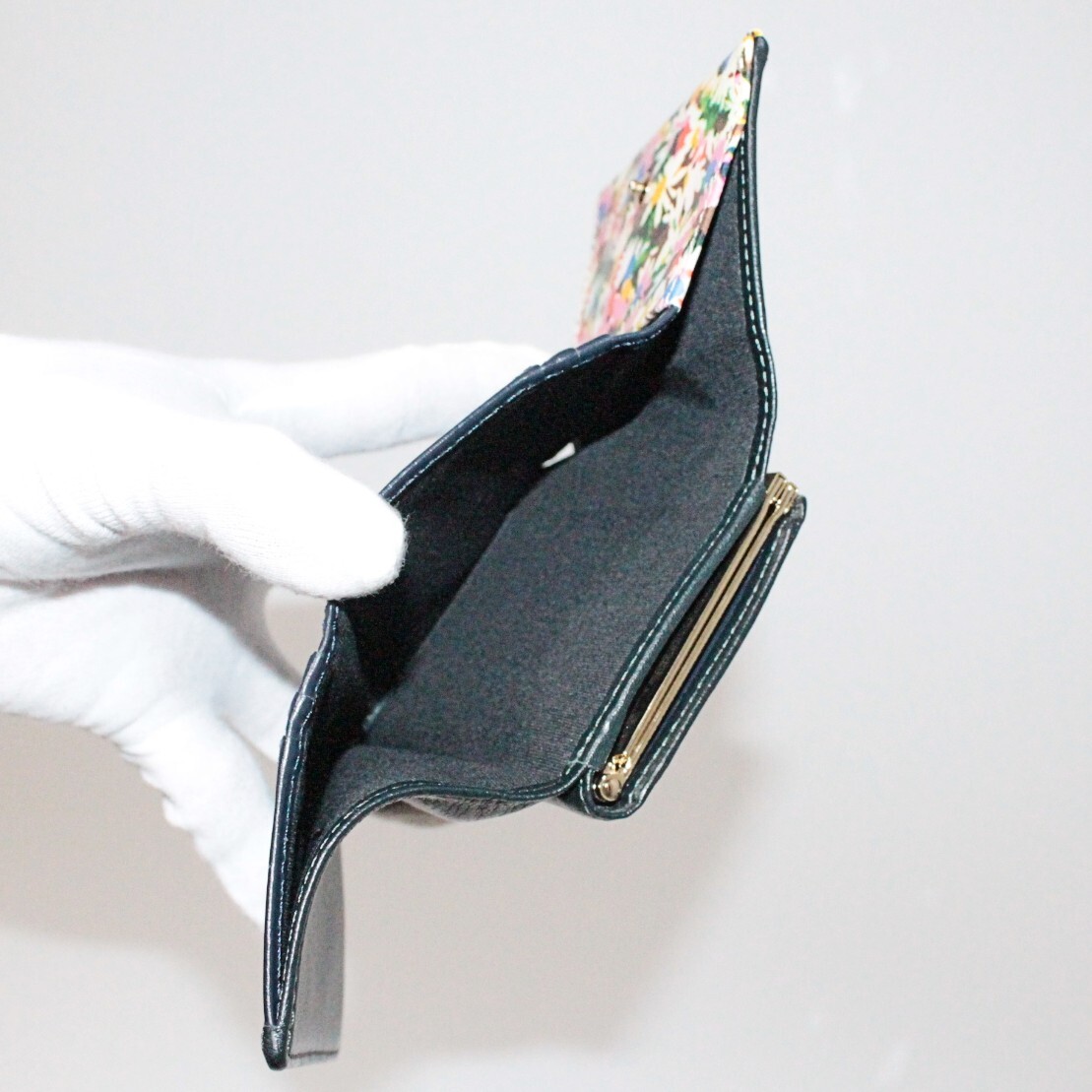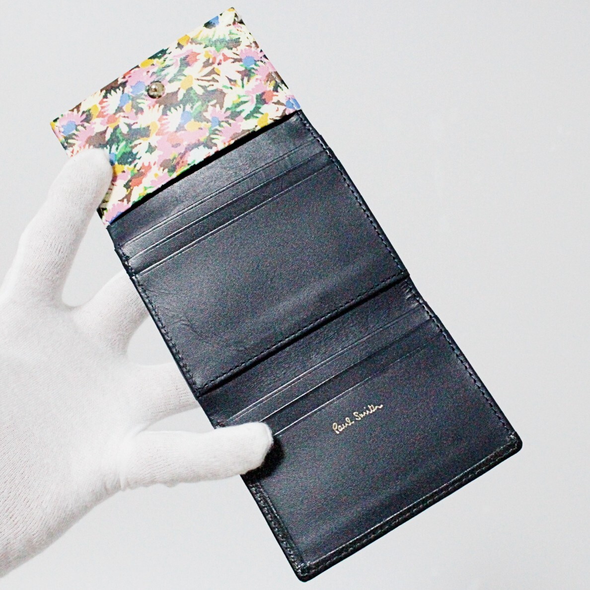 | 新品 ポールスミス マーガレット花柄レザー 三つ折りフラップ がま口財布 紺系 K5421 |