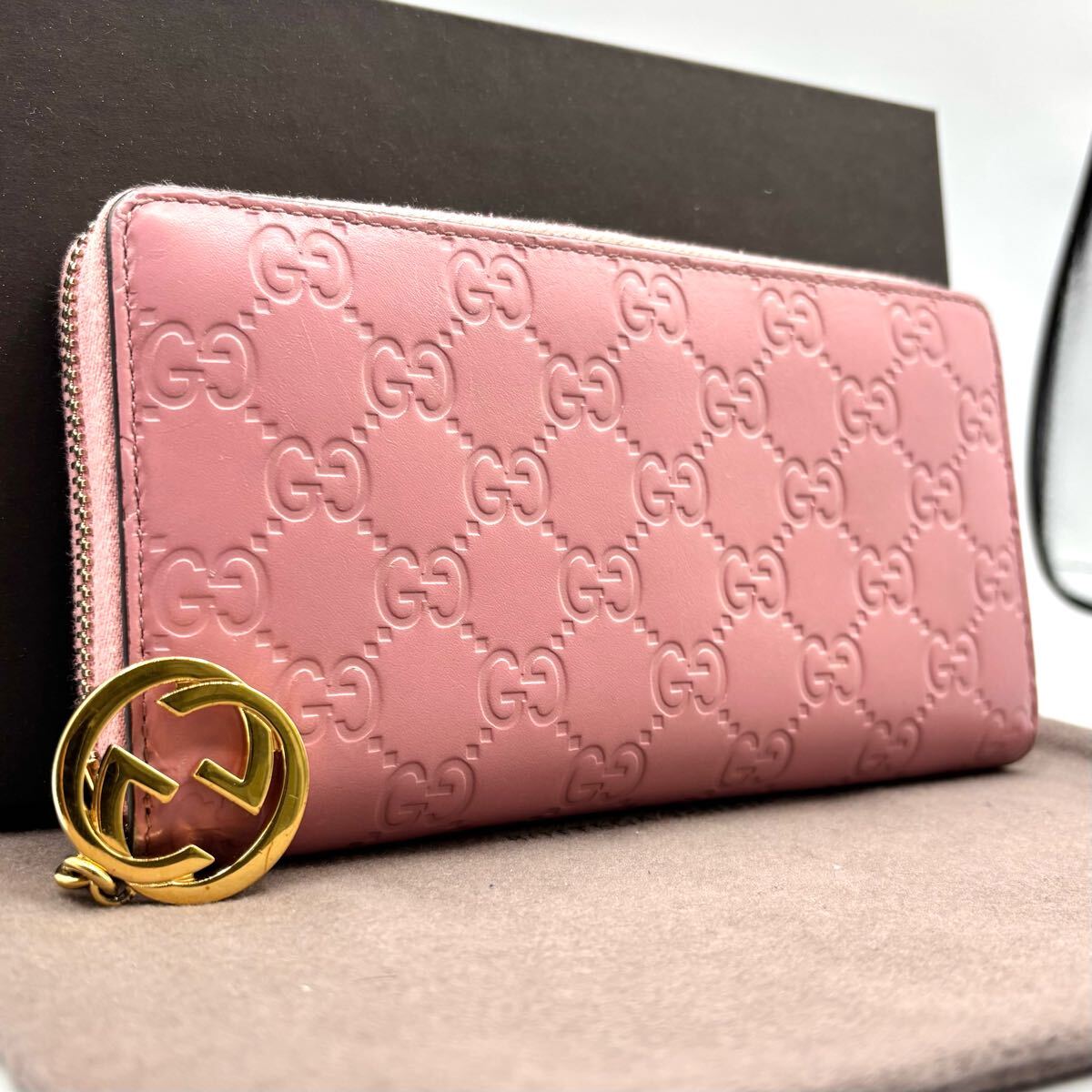 o46 GUCCI グッチ 長財布 ピンク グッチシマ レザー 收藏