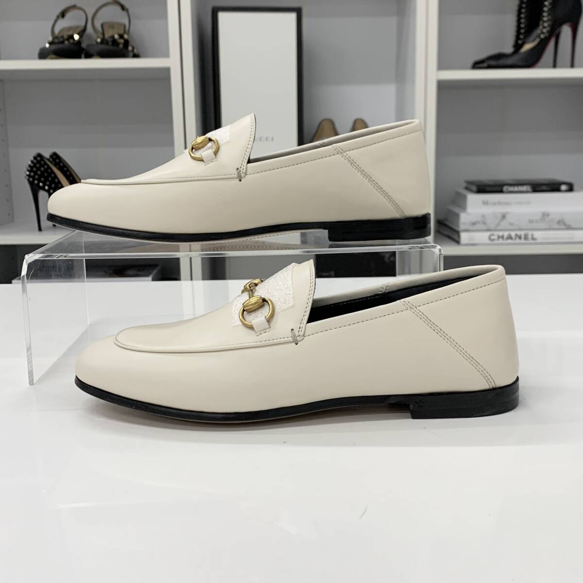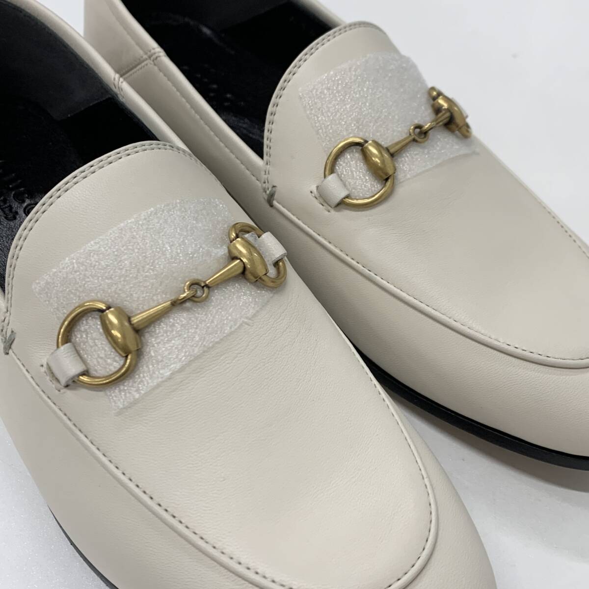 M12591 未使用 グッチ レザー ホースビット ローファー オフホワイト 收藏