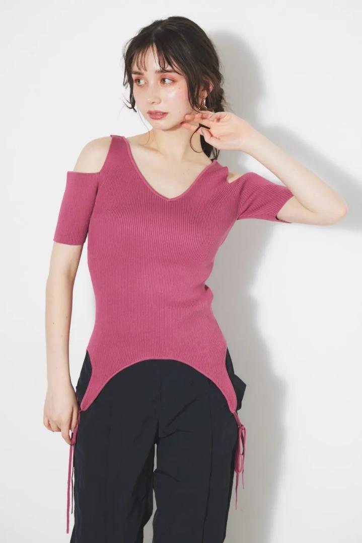 新品 rienda リエンダ 2WAYオフショルニット ピンク トップス 2WAYオフショルKnit TOP 收藏