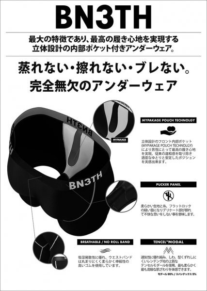 更にBN3THの特徴「MyPakage Pouch Technology 」のポケット機能により位置を変えたり調整したりする必要が無くなりストレスフリーで着用出来ます。