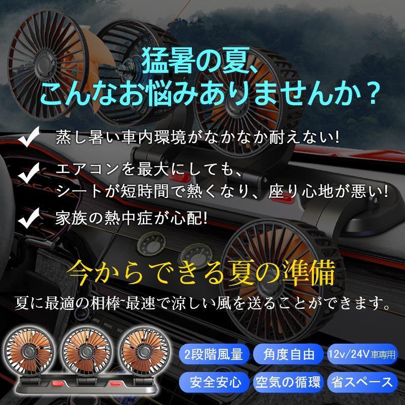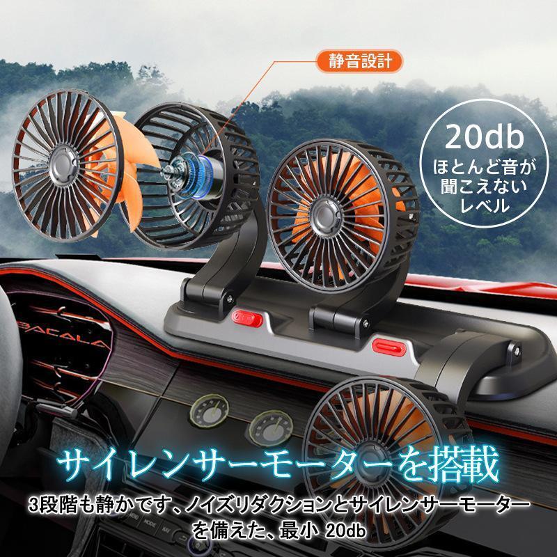 扇風機 車載扇風機 車用扇風機 360度回転 5枚羽根 シガーソケット 12v/24v専用 角度調整 熱対策 電動ファン 低騒音 風速風量調節可 小型 收藏