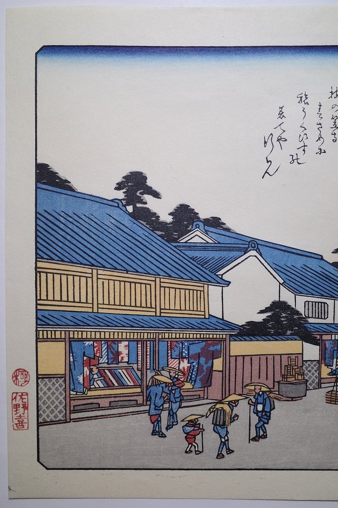 歌川広重【東海道五十三次 鳴海】■浮世絵 佐野喜版 狂歌入東海道 錦絵 名所絵 木版画 摺物 古書 和本 Hiroshige Ukiyoe 收藏