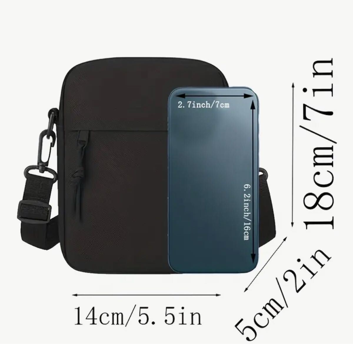 クロスボディショルダーバッグ 軽量ナイロン製 ミニスクエアバッグ 男女兼用 スマホポーチ ブラック 收藏