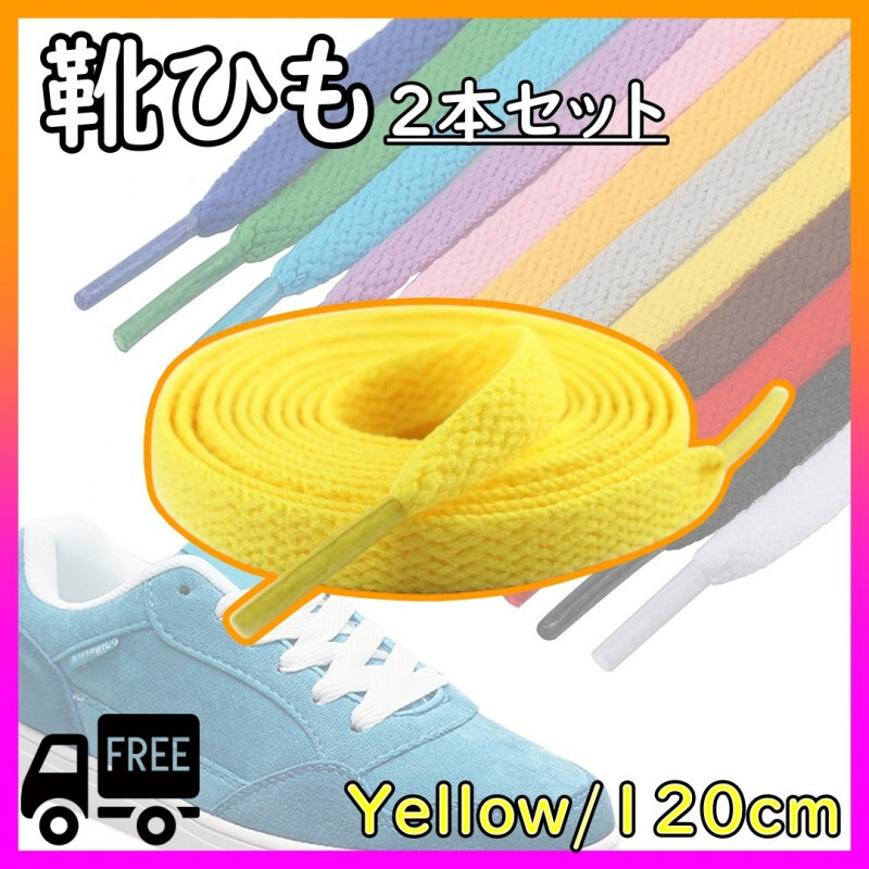 靴紐 靴ひも シューレース 120cm 2本セット スニーカー 黄色 收藏