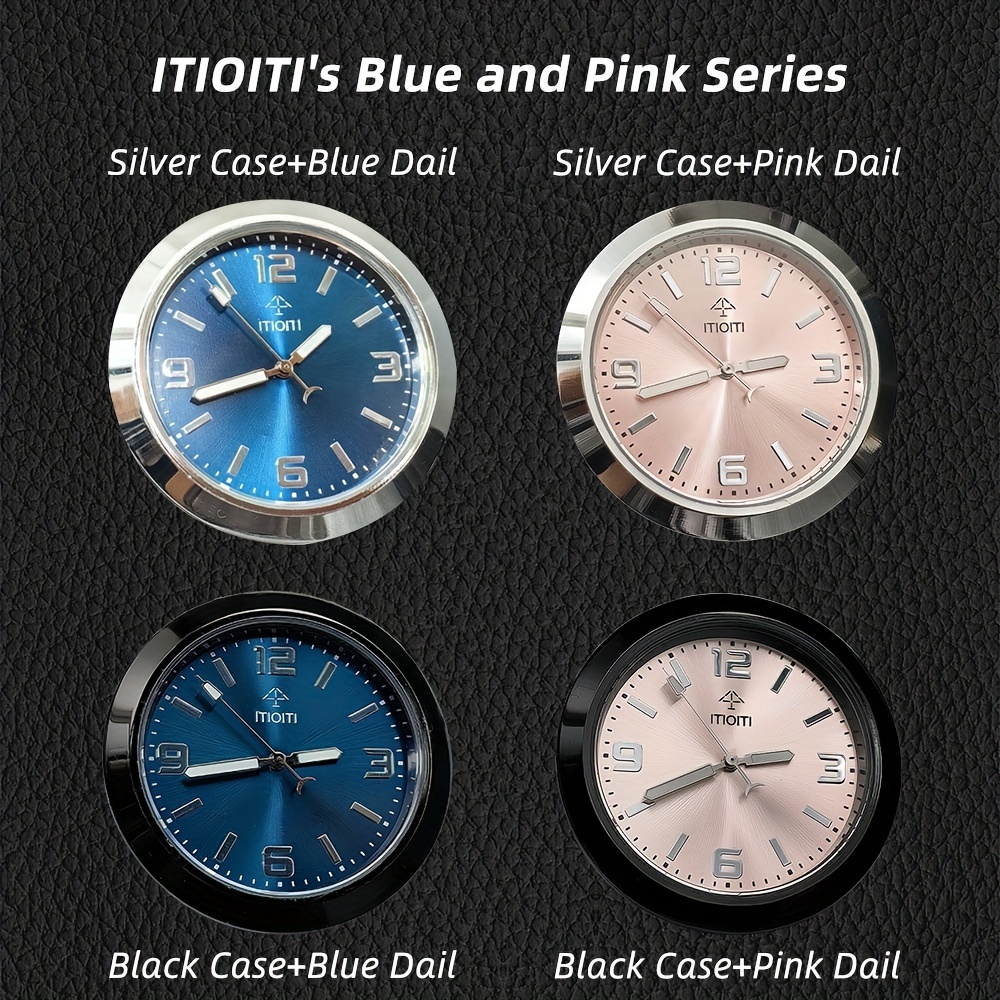 アナログ時計 車用 ミニ ピンク シルバー 車載用時計 丸型 4cm 夜間発光 光沢 高級感 シンプル 時計 ダッシュボード 貼り付け 電池式 t6544 收藏