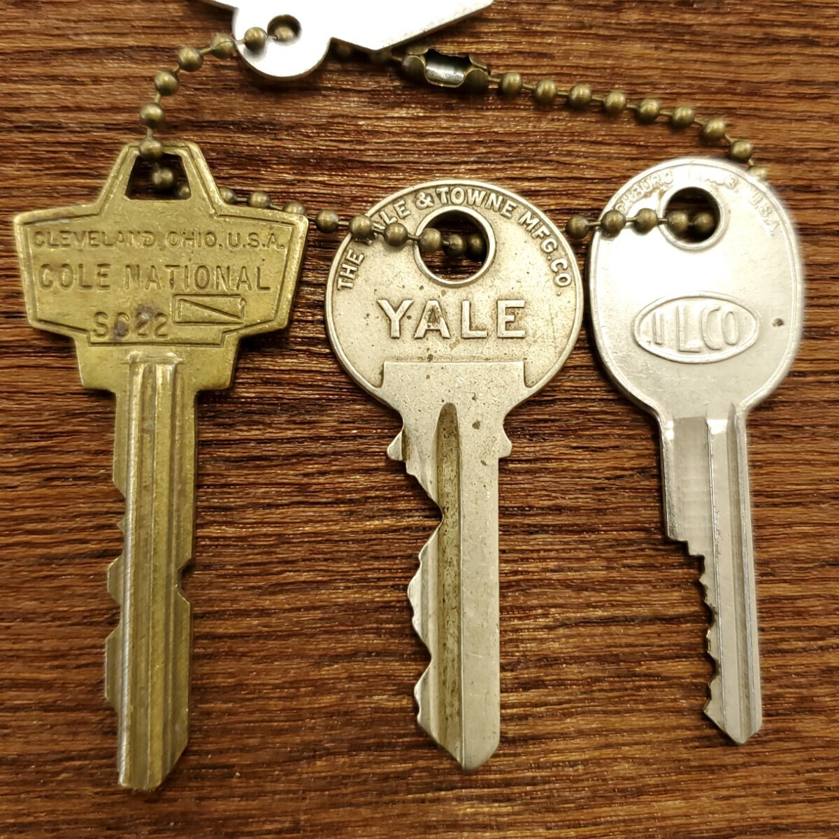 1973年ヴィンテージドッグタグ&オールドキー3本セット真鍮USA製アメリカ雑貨ブラス鍵キーホルダーボールチェーンアンティークシャビー 1043 收藏
