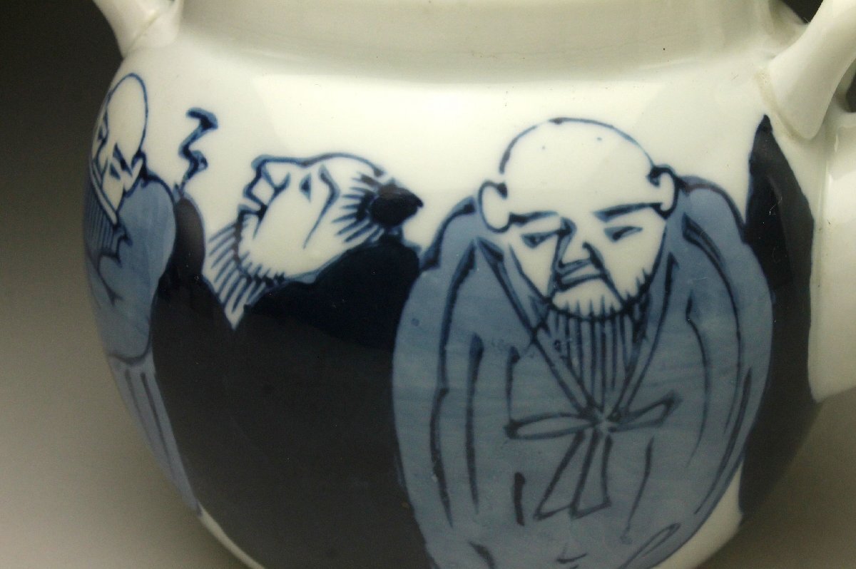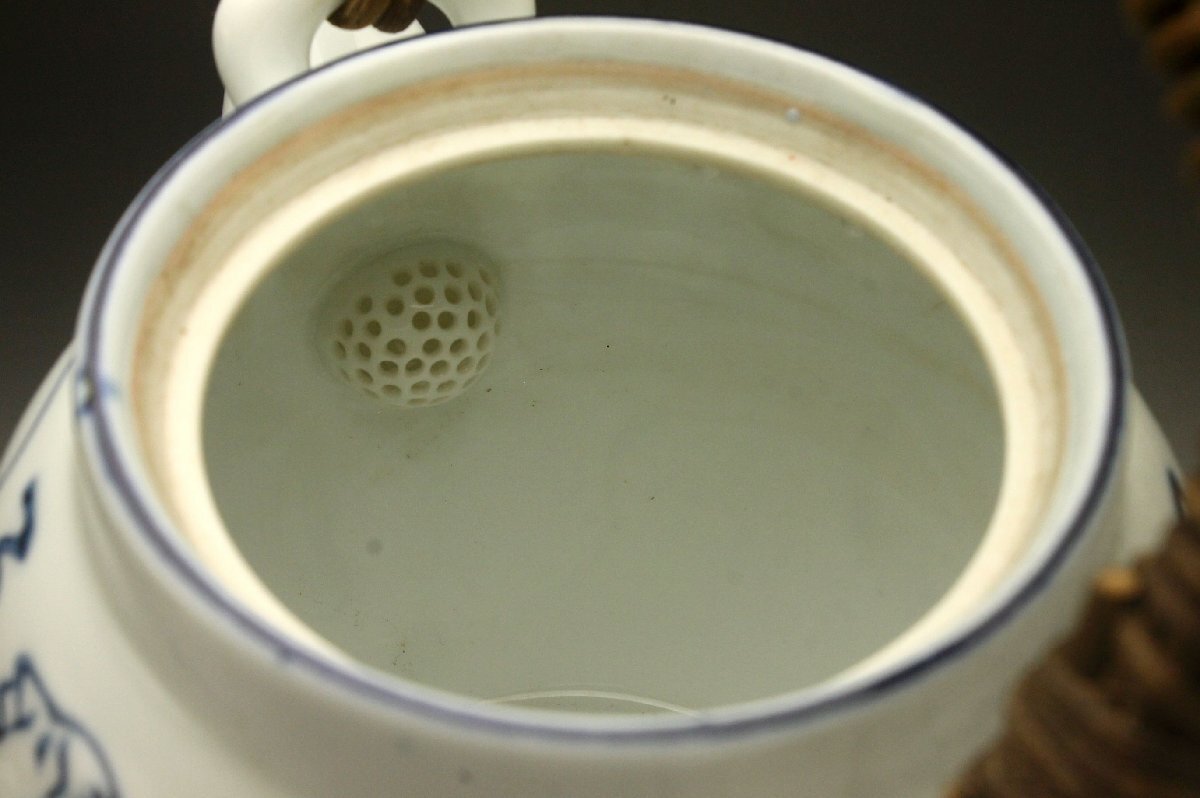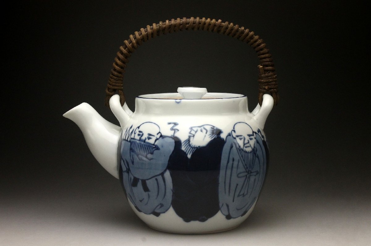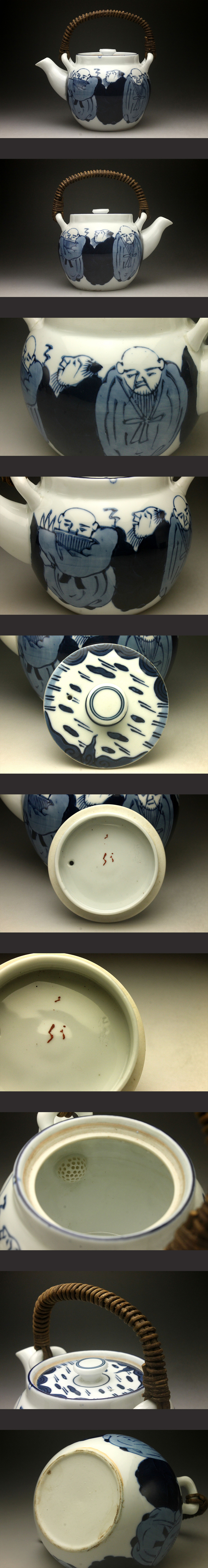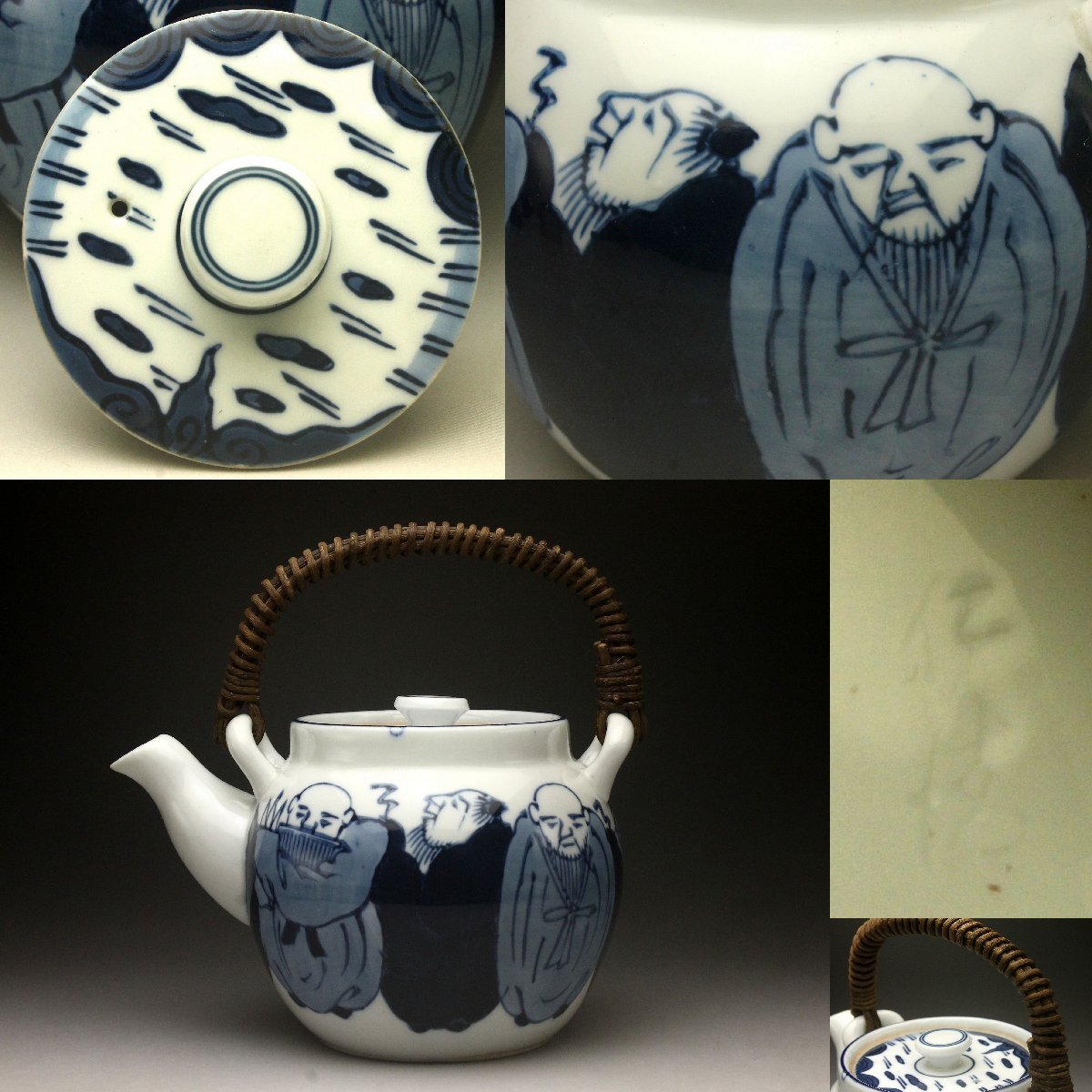 【余韻】 京焼 仁清 染付群老文 急須 藤手土瓶★煎茶 道具 無傷美品<同梱可> 收藏