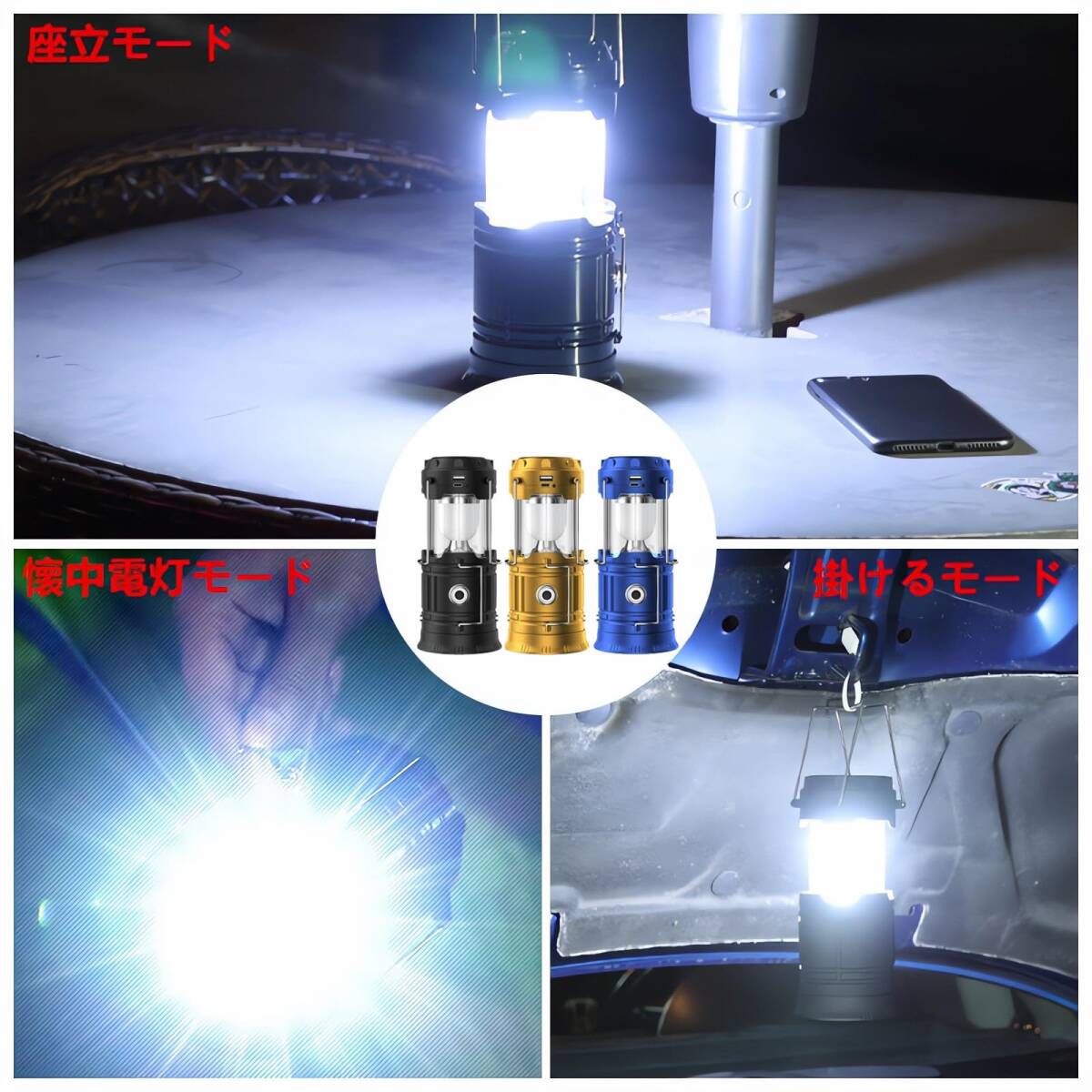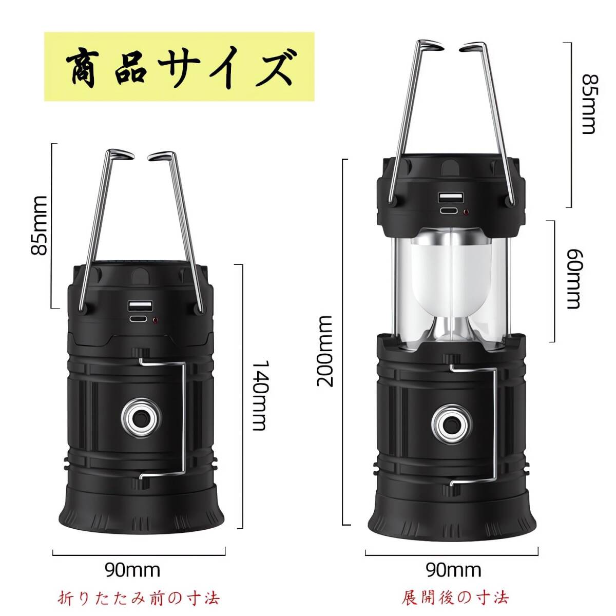 防水多機能ソーラーライト ソーラー式伸縮ランタン 高輝度LEDライト USB充電 折り畳み式 携帯型 防水 軽量 吊り下げデザイン 持ち運び便利 夜釣り 登山 キャンプ 台風 地震 災害 防災グッズ 停電 緊急対策 (ブラック)
