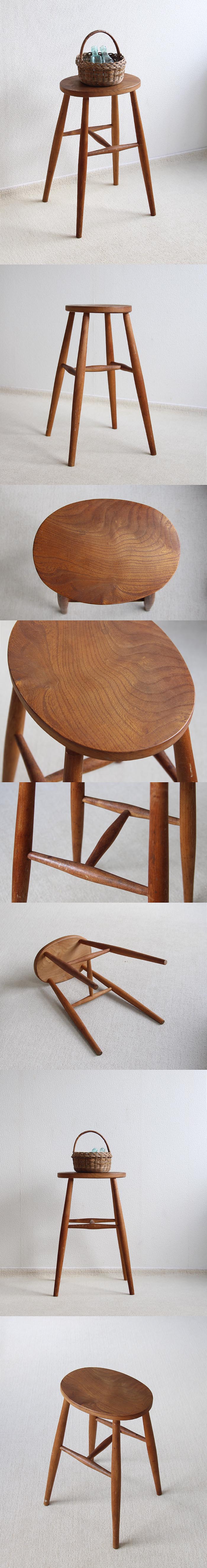 ●イギリス ヴィンテージ ハイスツール 木製椅子 カントリー 飾り台 インテリア 店舗什器 ディスプレイ 家具 K-824 收藏