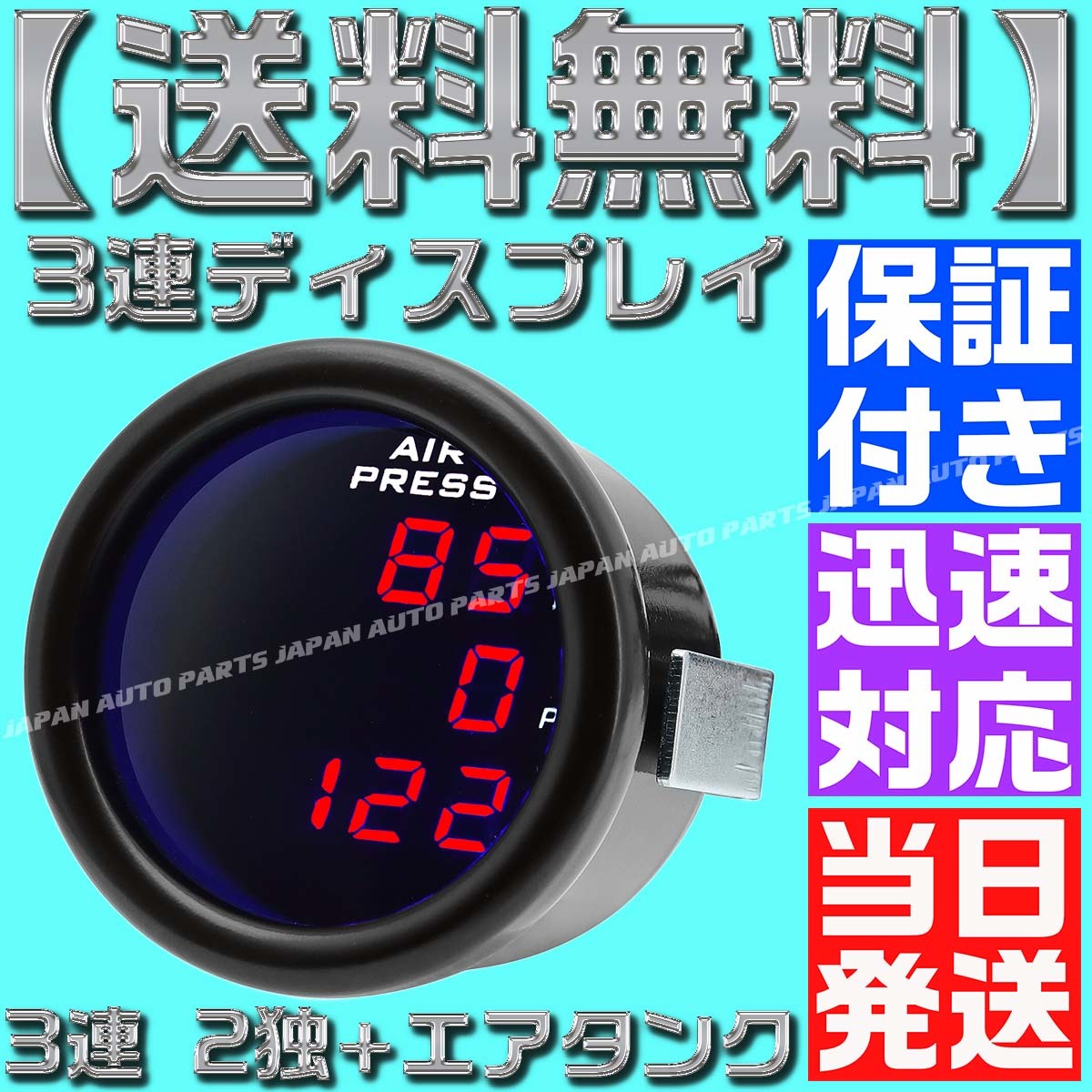 【送料無料】【当日発送】【保証付】赤 レッド デジタル エアゲージ エア メーター 3連 2独 前後 + タンク エアサス LED PSI エアゲージ 收藏