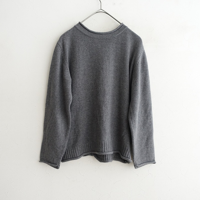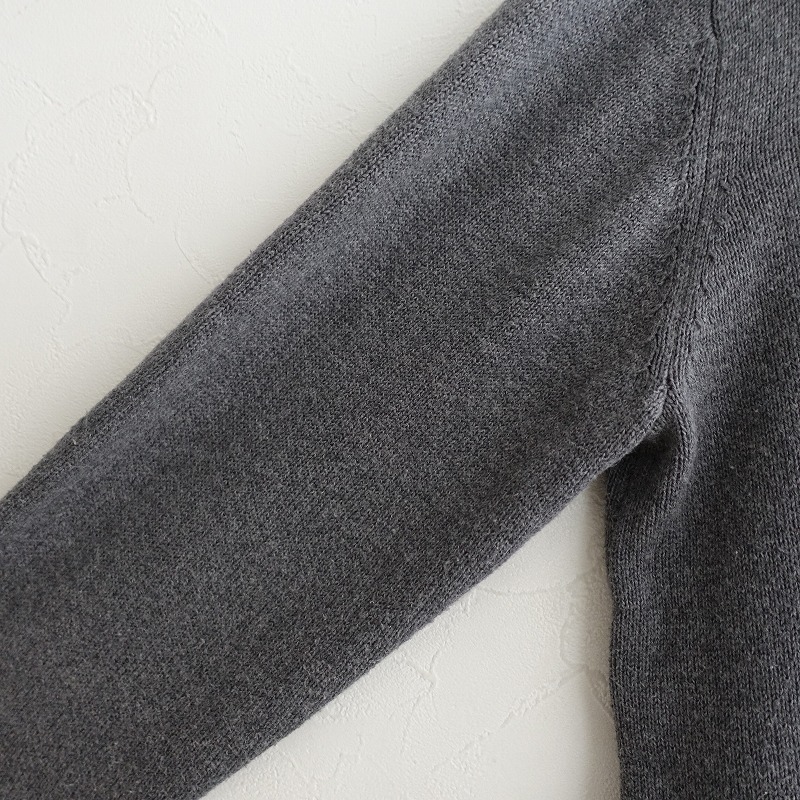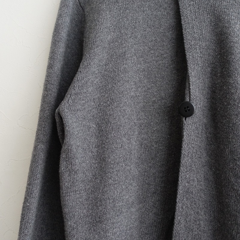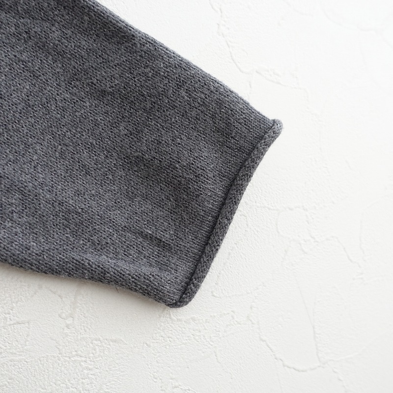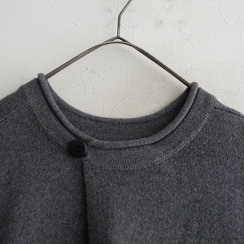 | grinのコットンカシミヤニットカーディガンです。カラーはグレーで、コットンカシミヤのニット素材で仕立てられています。ボタン開閉で、衿ぐりや袖口、裾はロールしたデザインになっております。 |