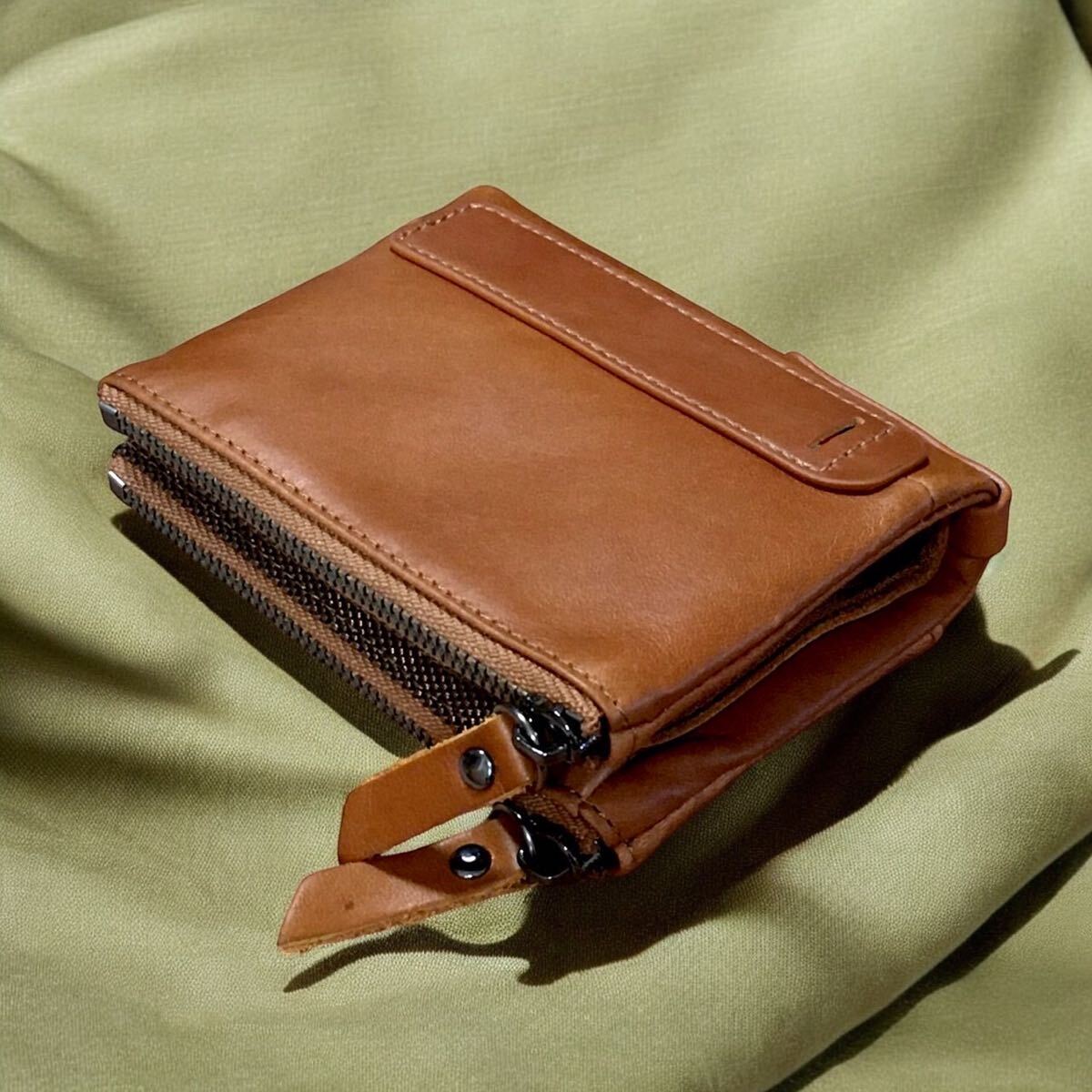 二つ折り財布 茶 大容量 メンズ レディース 小銭入れ 本革 コンパクト財布 收藏