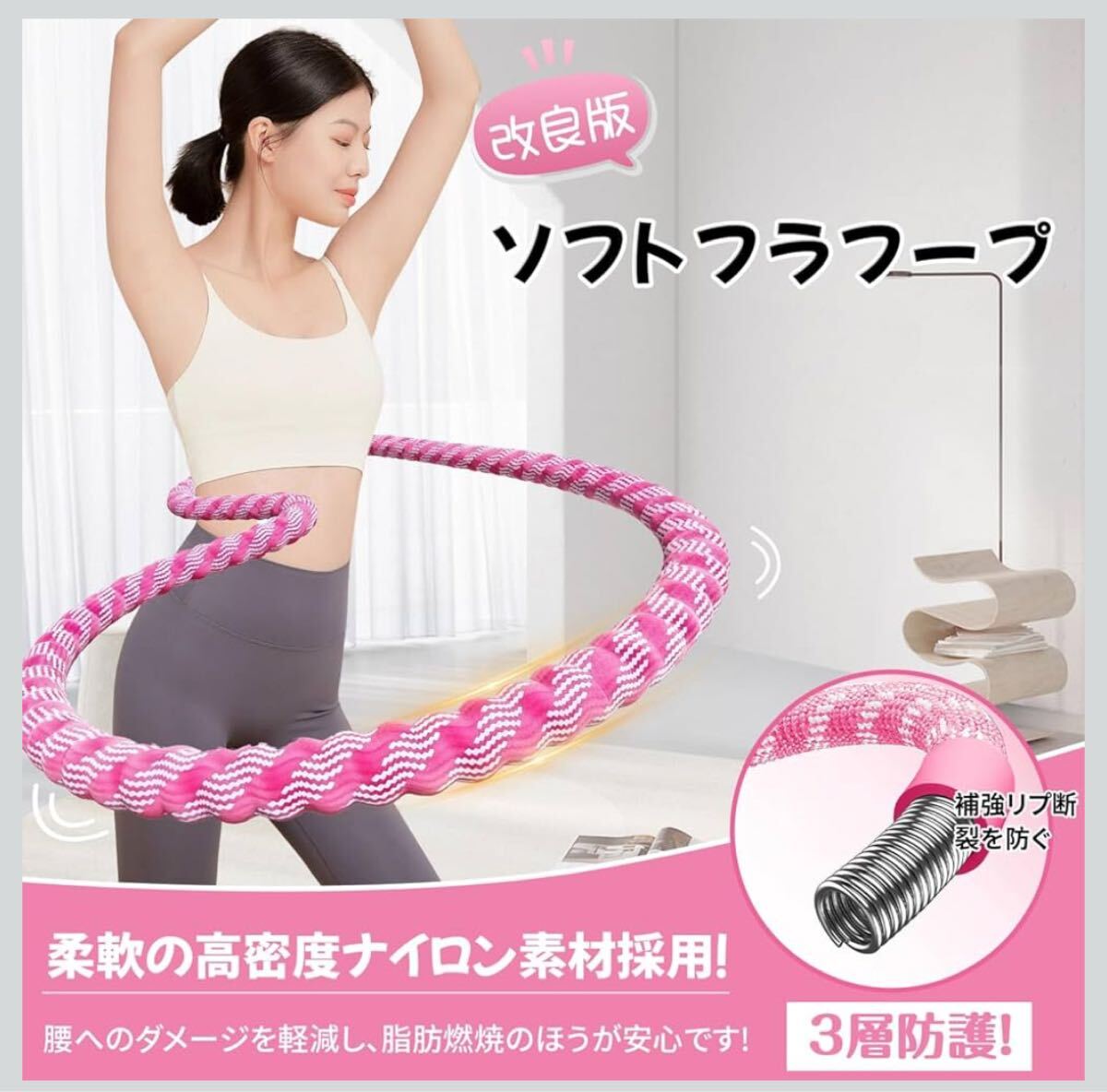 ② フラフープ ダイエット用 ソフトフラフープ スプリングフラフープ 成人用 ソフト全包み腰保護 静音 収納簡単 ウエスト/背中/脚 收藏