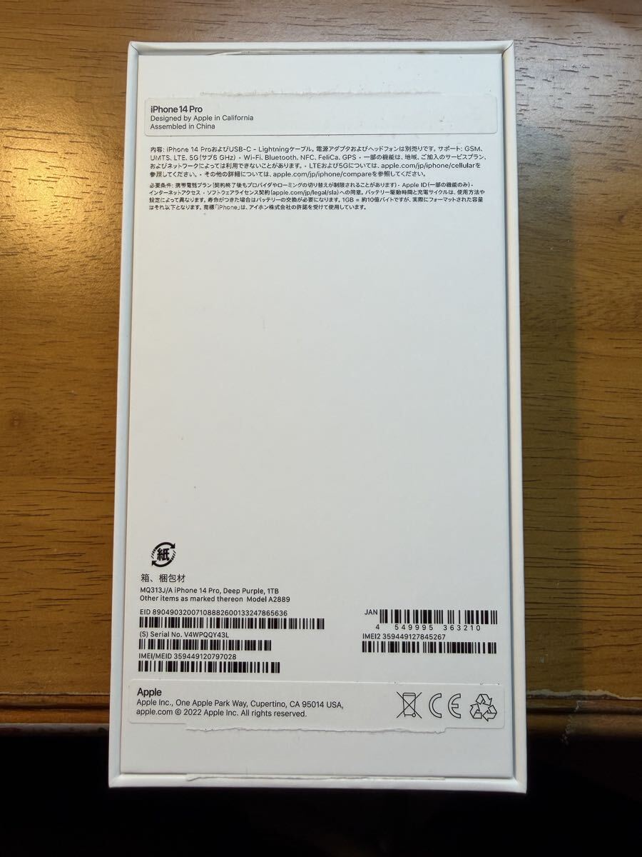 iPhone14 pro 1TB SIMフリー ディープパープル 残債無 Apple バッテリー新品 純正ケース オマケ付き 收藏